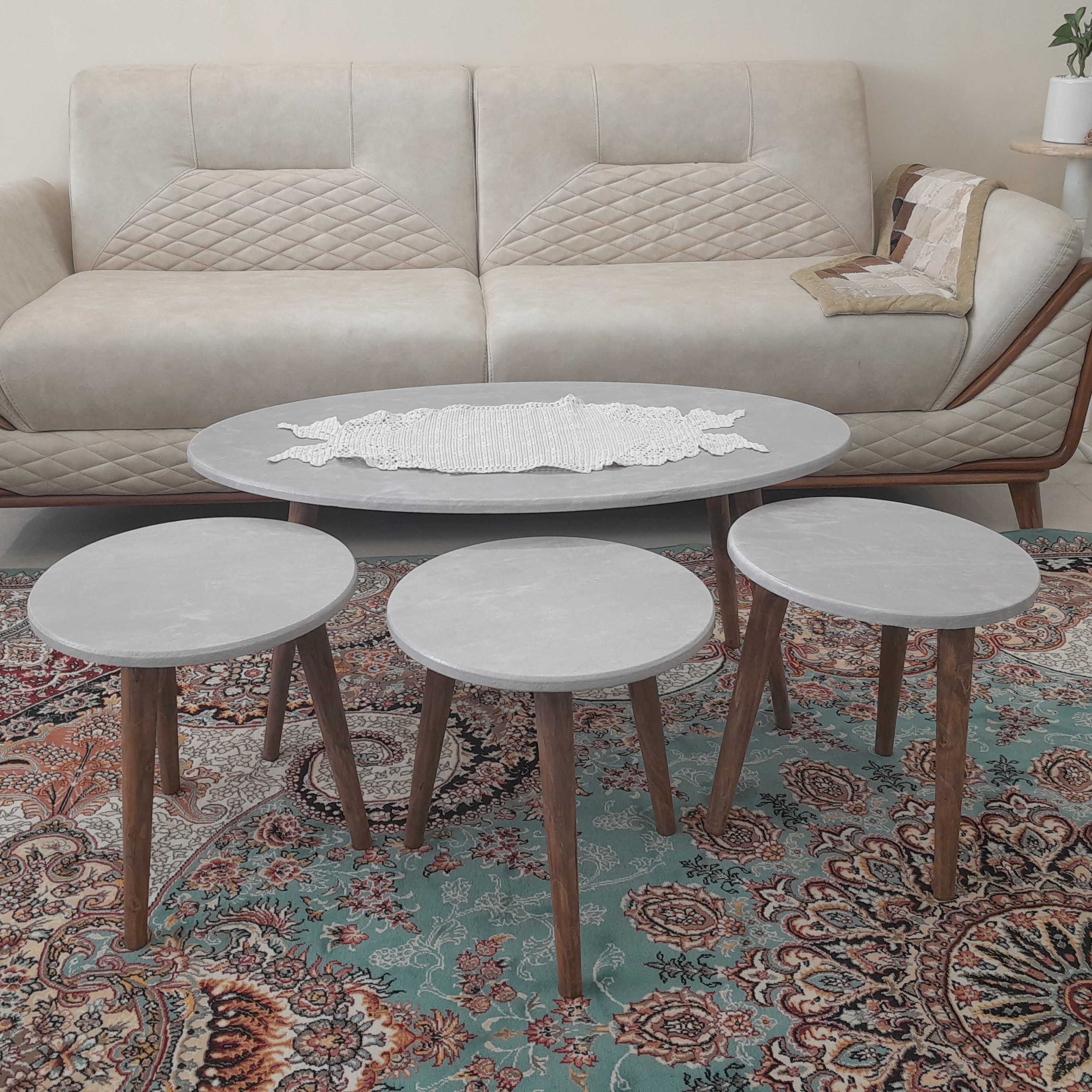 میز جلو مبلی بیضی طوسی ابروباد 4تکه هزینه ارسال با مشتری کمترین قیمت میزجلومبلی میز عسلی میزعسلی میز مبلمونسرا مدل 218088