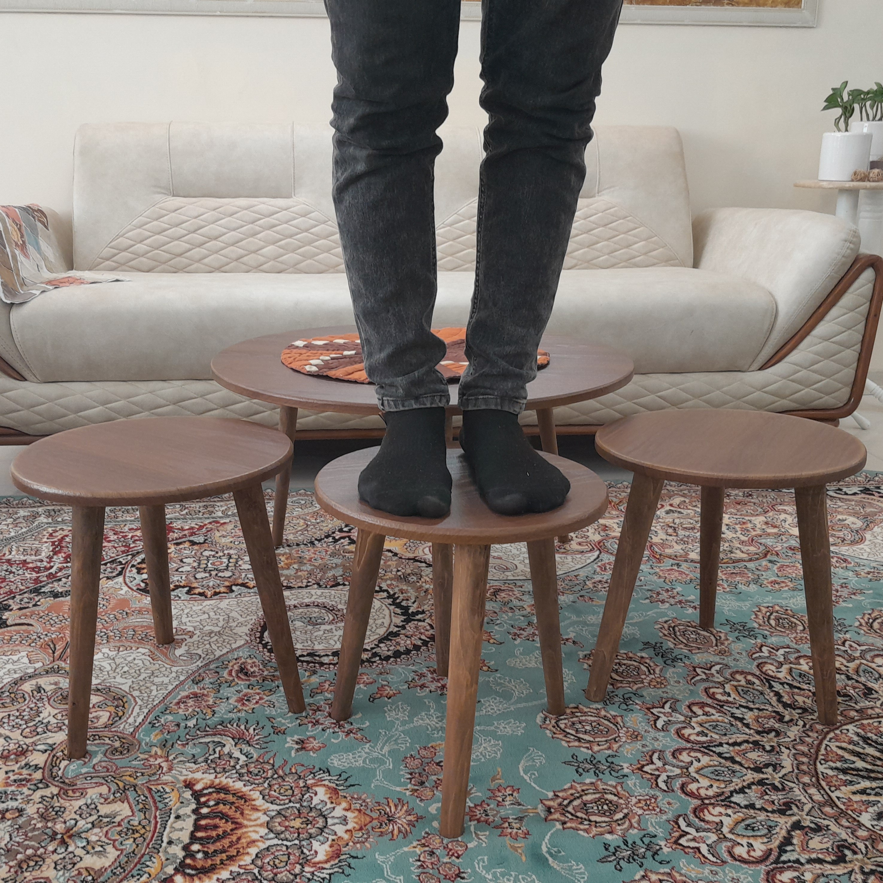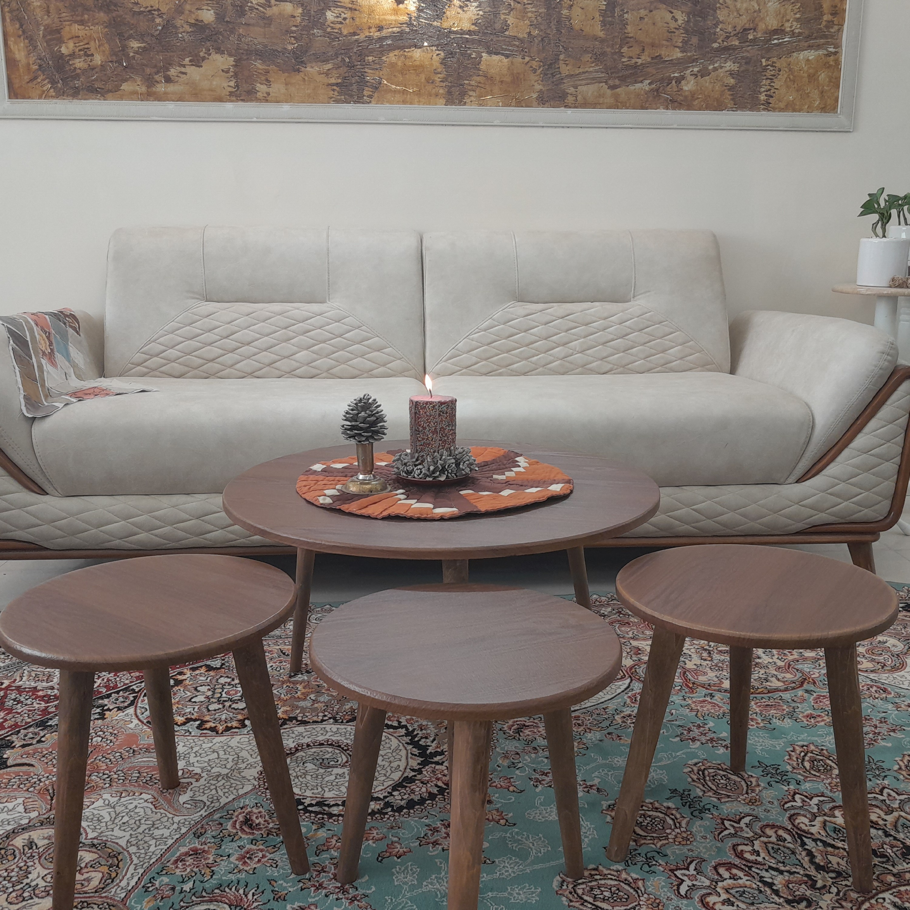 میز جلو مبلی دایره قهوه ای کلیاف 4تکه هزینه ارسال با مشتری کمترین قیمت میزجلومبلی میز عسلی میزعسلی میز مبلمونسرا مدل 223378
