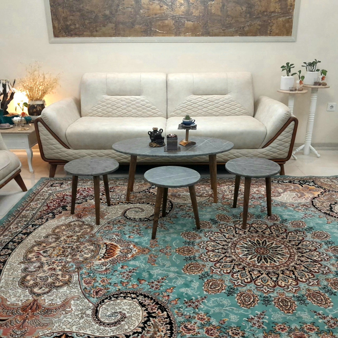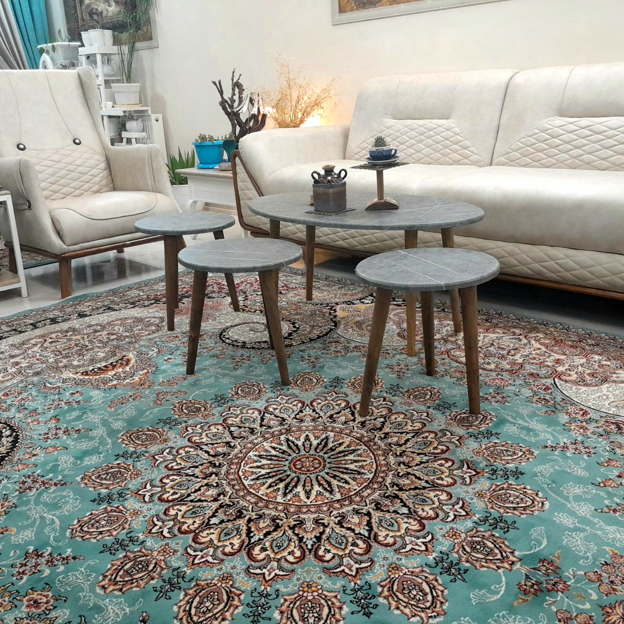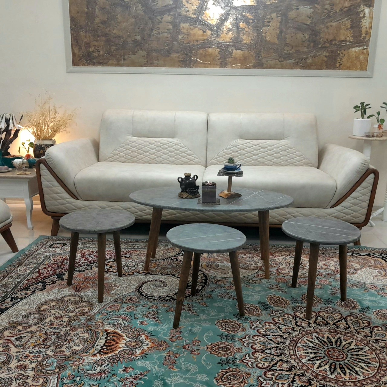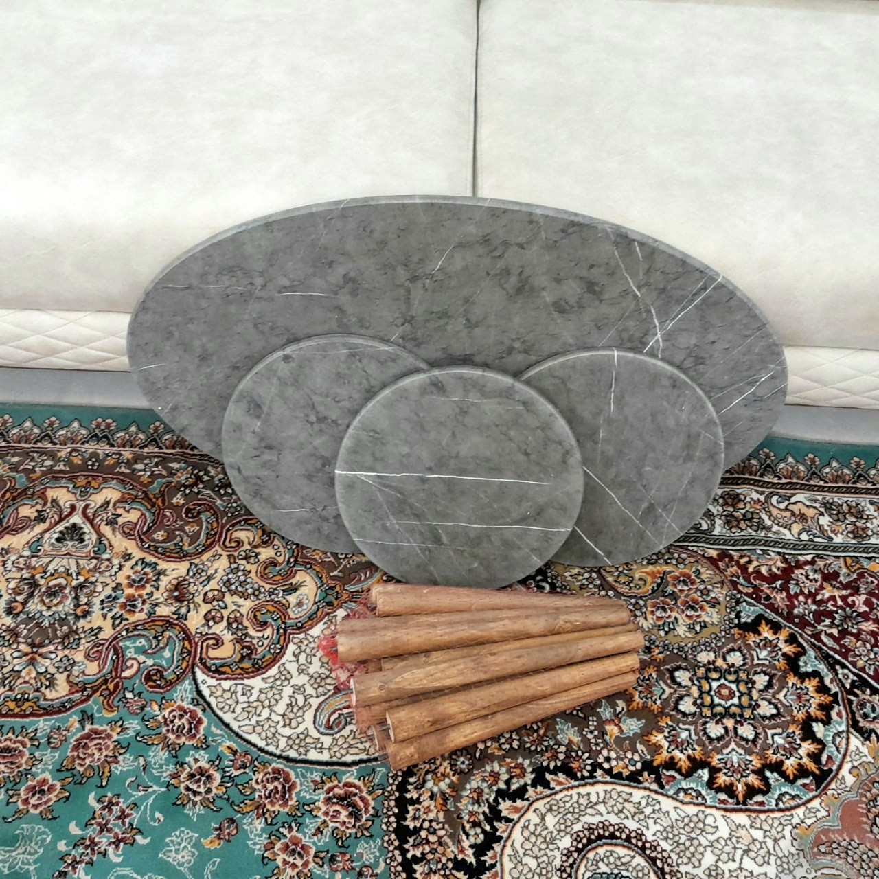 میز جلو مبلی بیضی زغالی طرح سنگ 4تکه هزینه ارسال با مشتری کمترین قیمت میزجلومبلی میز عسلی میزعسلی میز مبل مبلمونسرا مدل 224386