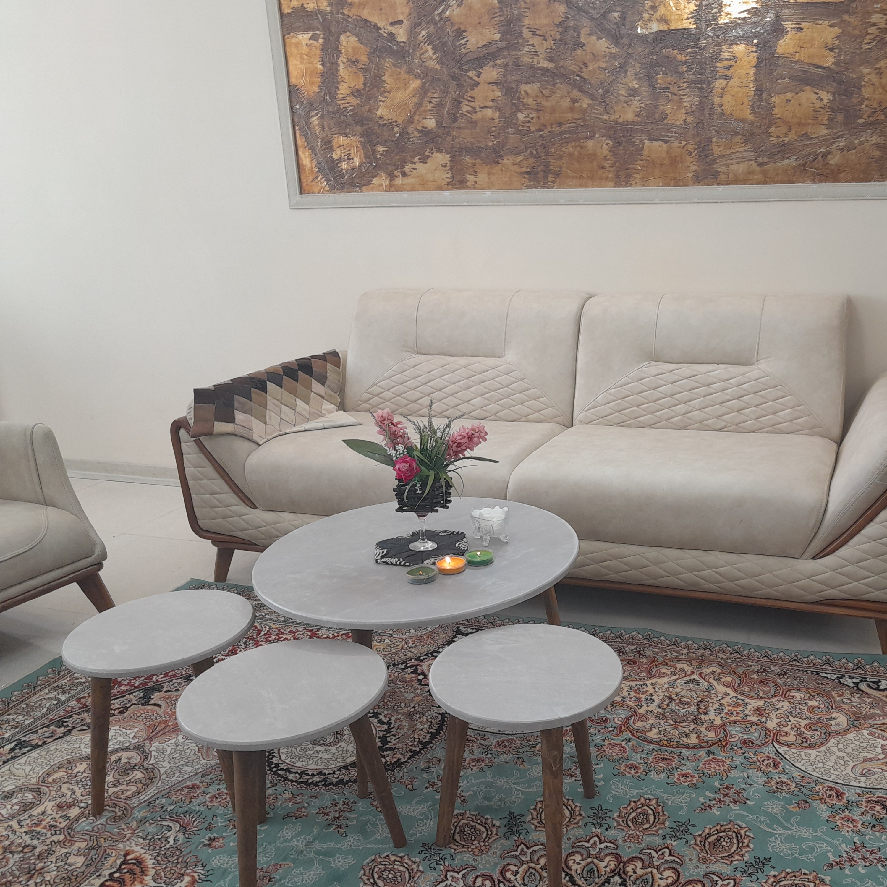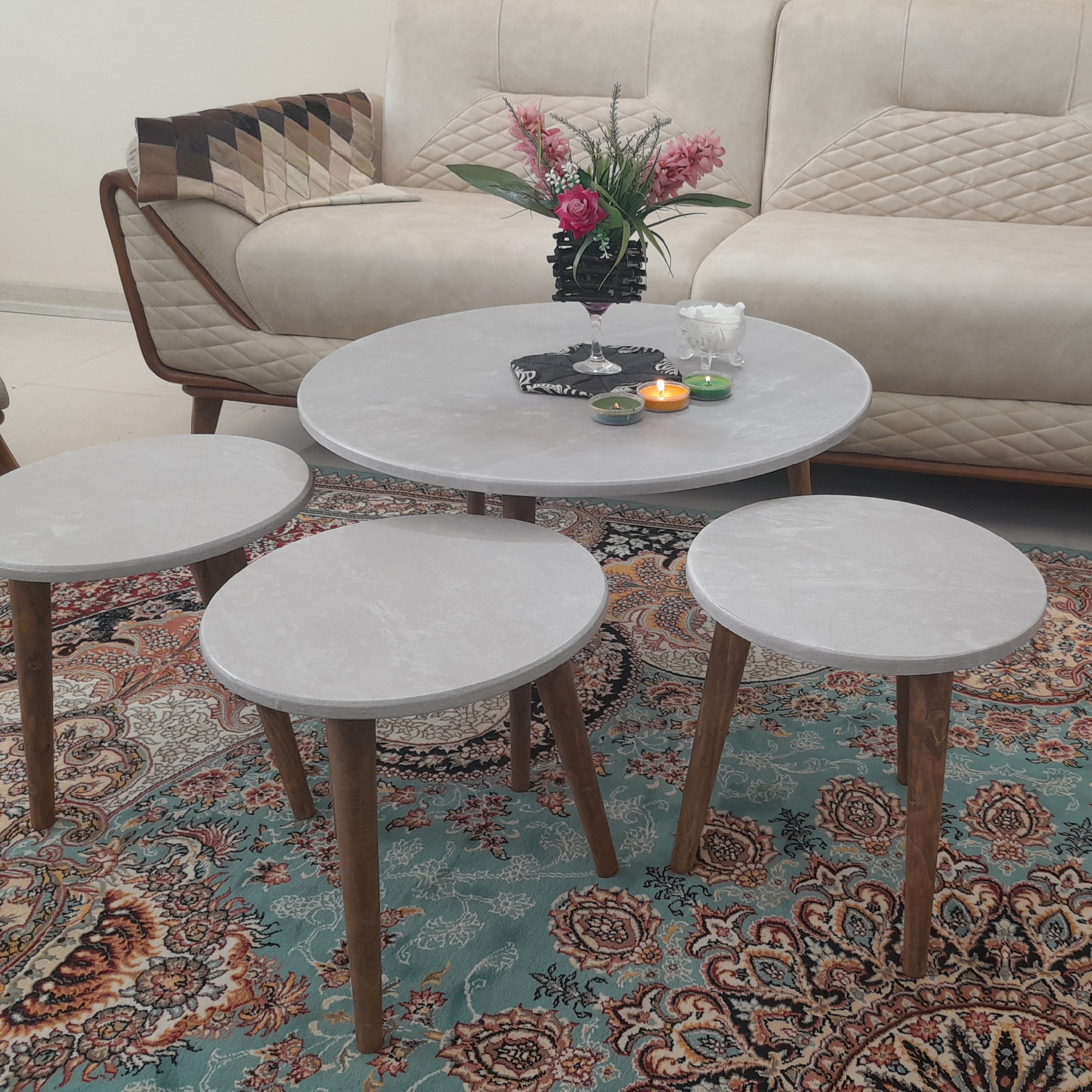 میز جلو مبلی دایره 4تکه تنوع رنگبندی هزینه ارسال با مشتری کمترین قیمت میزجلومبلی میز عسلی میزعسلی میز مبلمونسرا مدل 218137