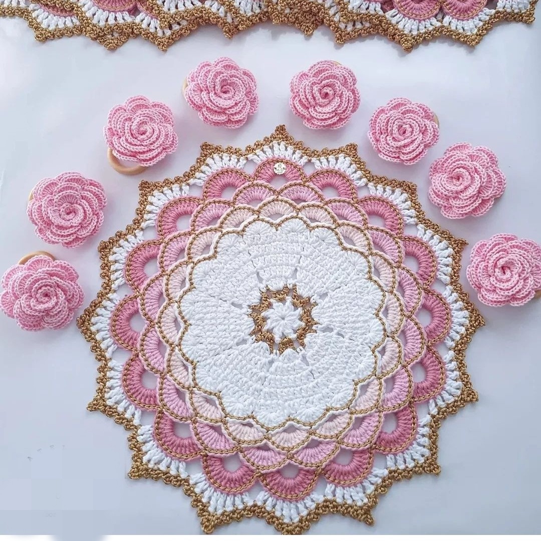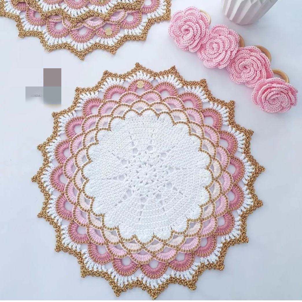 زیر بشقابی و رومیزی مکرومه بسیار شیک مبلمونسرا مدل 300415