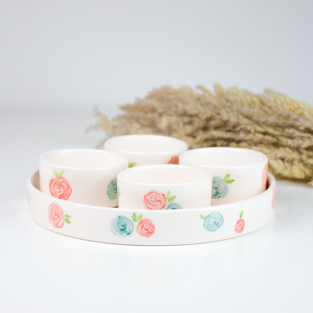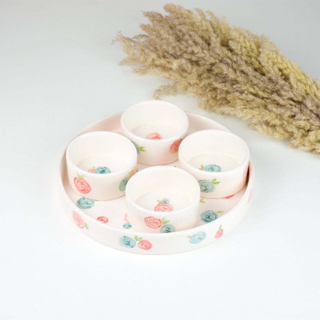 ظرف اردور خوری سرامیکی 5 تکه دستساز طرح گلپر مبلمونسرا مدل 276362