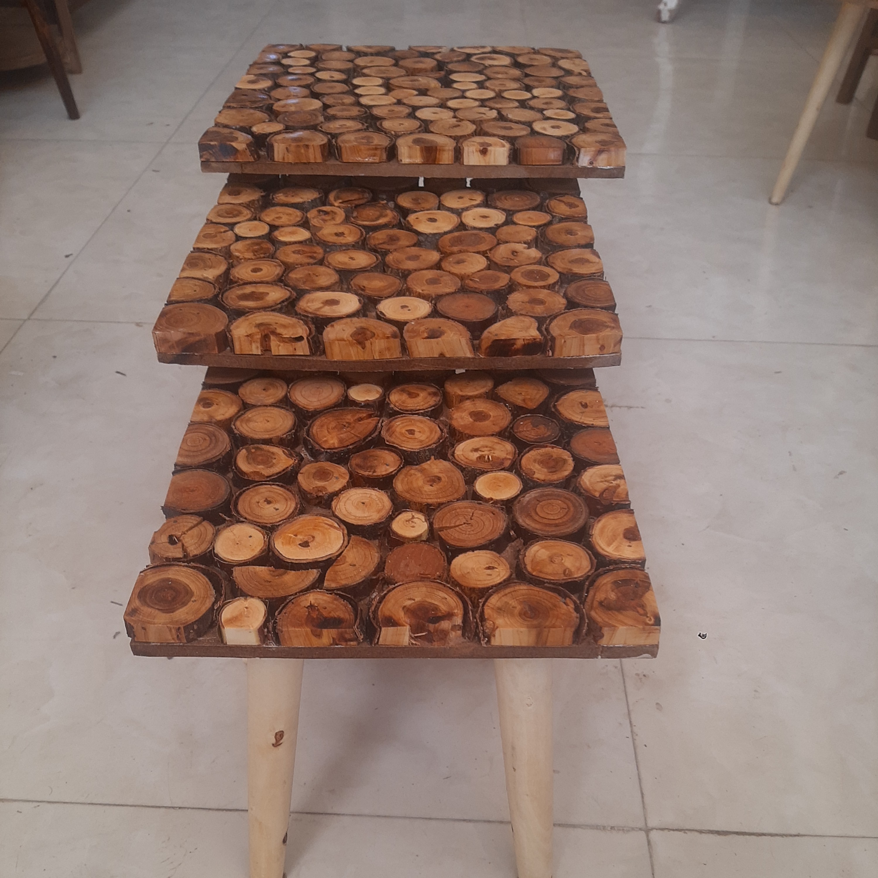 میز مربعی سه تیکه چوبی با چوب زردالو مبلمونسرا مدل 219506