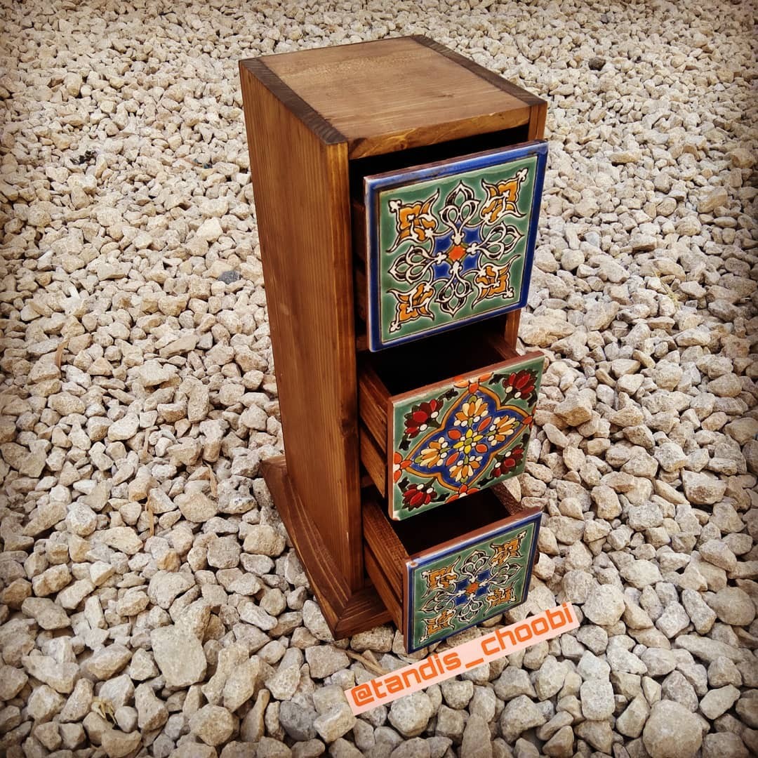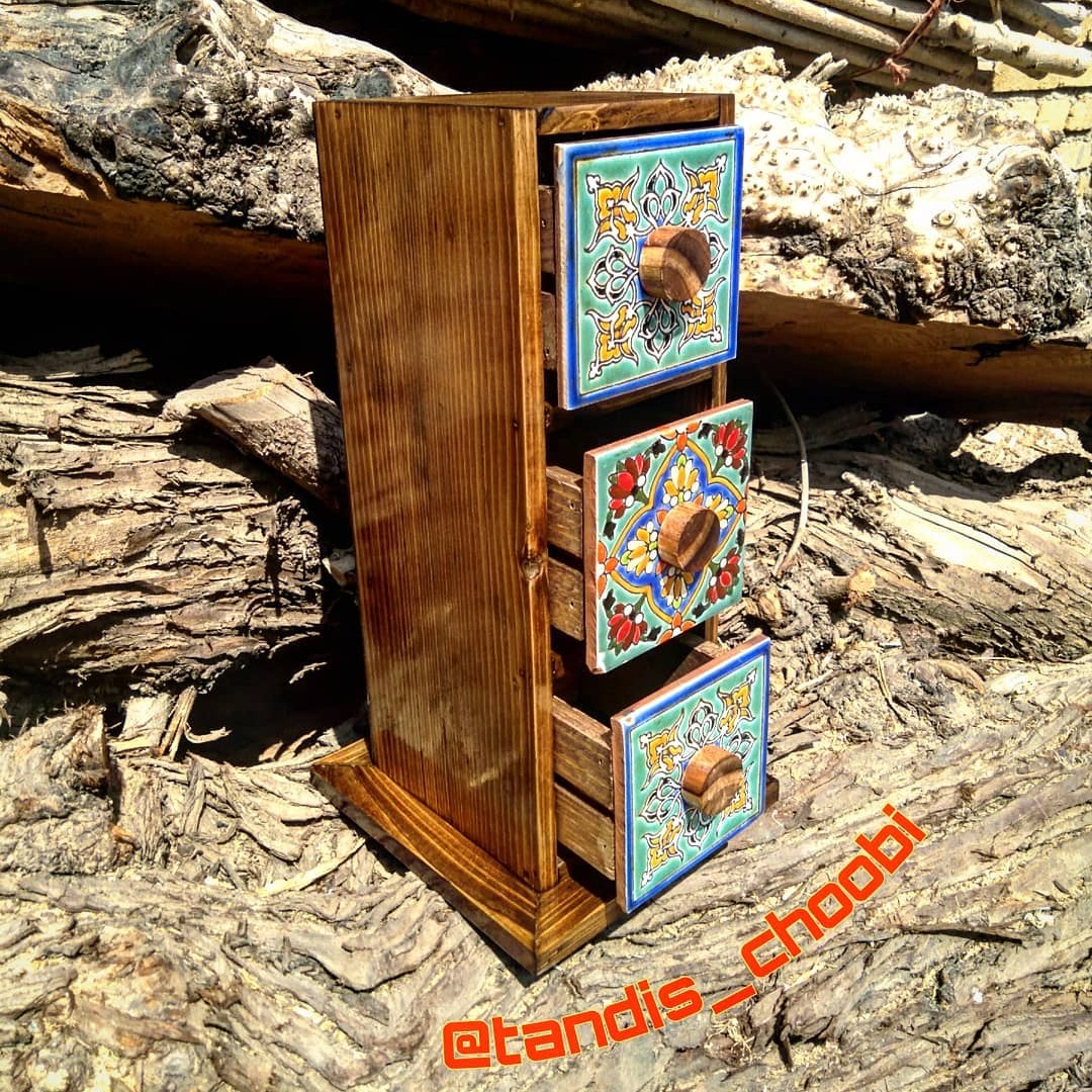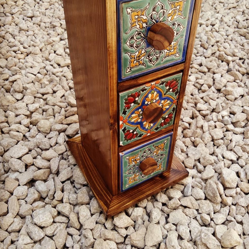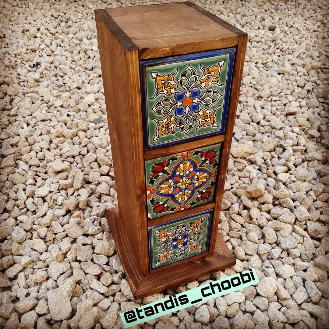 دراور مینیاتوری رو میزی منحصر به فرد و کاملاوسنتی و البته کاربردی مناسب میز آرایش و غیره درب سفال میناکاری و بدنه چوب