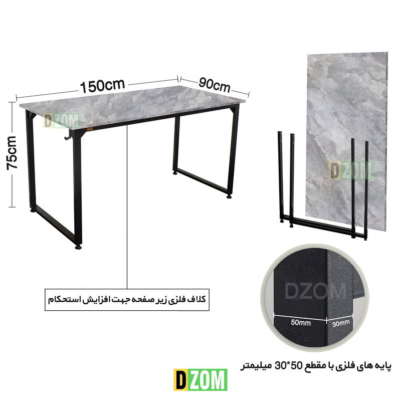 میز اداری DZom مدل مونتاژی TLD_asm_150×90_GR محصولی مونتاژی، سبک، شیک و در عین حال جذاب و کارآمد از سری تولیدات میباشد. مشتری گرامی توجه نمایید محصولات برند (شماره ثبت 414013 اداره ثبت علائم تجاری) با کیفیت و بستهبندی اصلی تنها توسط فروشنده رسمی در دیجیکالا عرضه میشود، لطفاً از خرید کالای تقلبی از سایر فروشندگان خودداری فرمایید. این محصول بصورت سلف اسمبل (مونتاژی) تولید شده است. این میز حمل و نقل آسان و هزینه حمل مقرون به صرفه ای دارد. این میز از پایه های فلزی با مقطع 50x30 میلیمتر و رنگ رویه الکترو با ی و دوام بالا ساخته شده است. همچنین پایه های پیچی، قابلیت تنظیم نسبت به سطح زمین را دارد تا بهترین تراز جهت جلوگیری از تکان خوردن را ایجاد نماید. صفحه میز از جنس MDF درجه یک برجسته به رنگ طوسی می باشد. این محصول با طول 150cm، عرض 90cm و ارتفاع 75cm عرضه می شود. به این نکته توجه شود که تنوع رنگ انتخابی کالا تنها مربوط به رنگ پایه های فلزی میباشد.