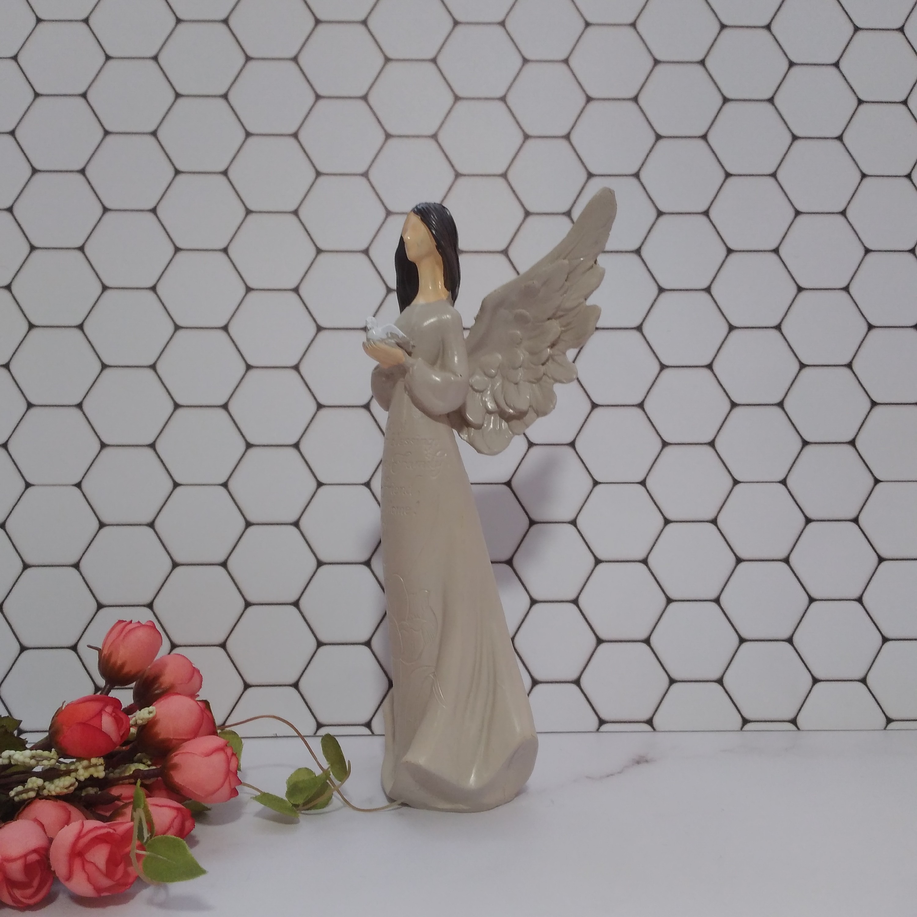 مجسمه فرشته با کبوتر مدل ایستاده جنس پلی استر قابل شستشو مناسب هدیه مبلمونسرا مدل 253760