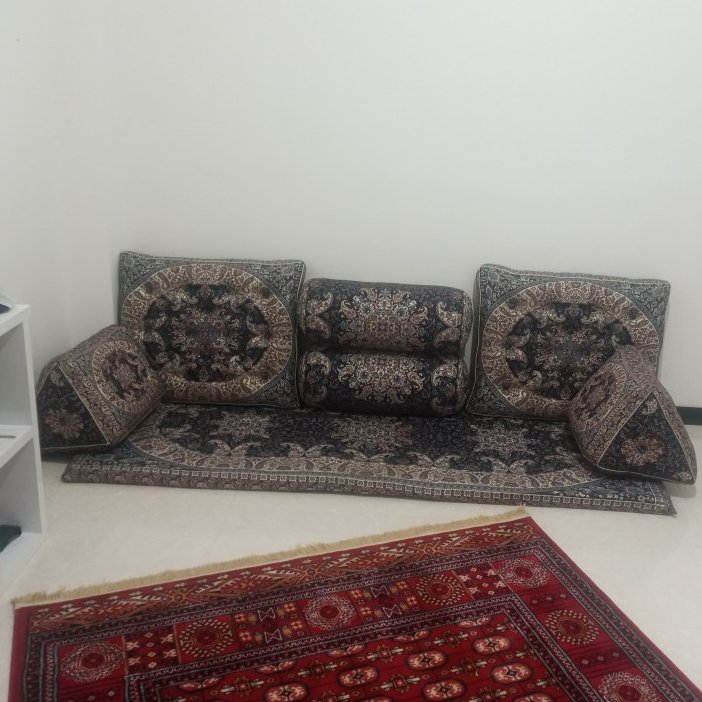 شاه نشین هفت تکه شامل یک تشک و دو عدد پشتی و دو عدد لوله ای زیرکش دار و دوعدد مثلثی با جنس محکم مخصوص تکیه گاه