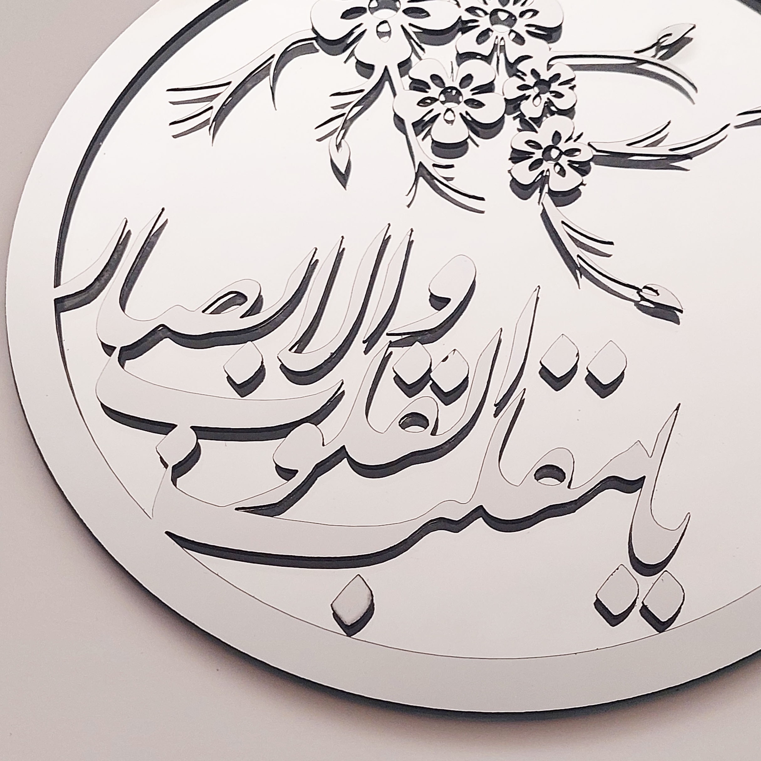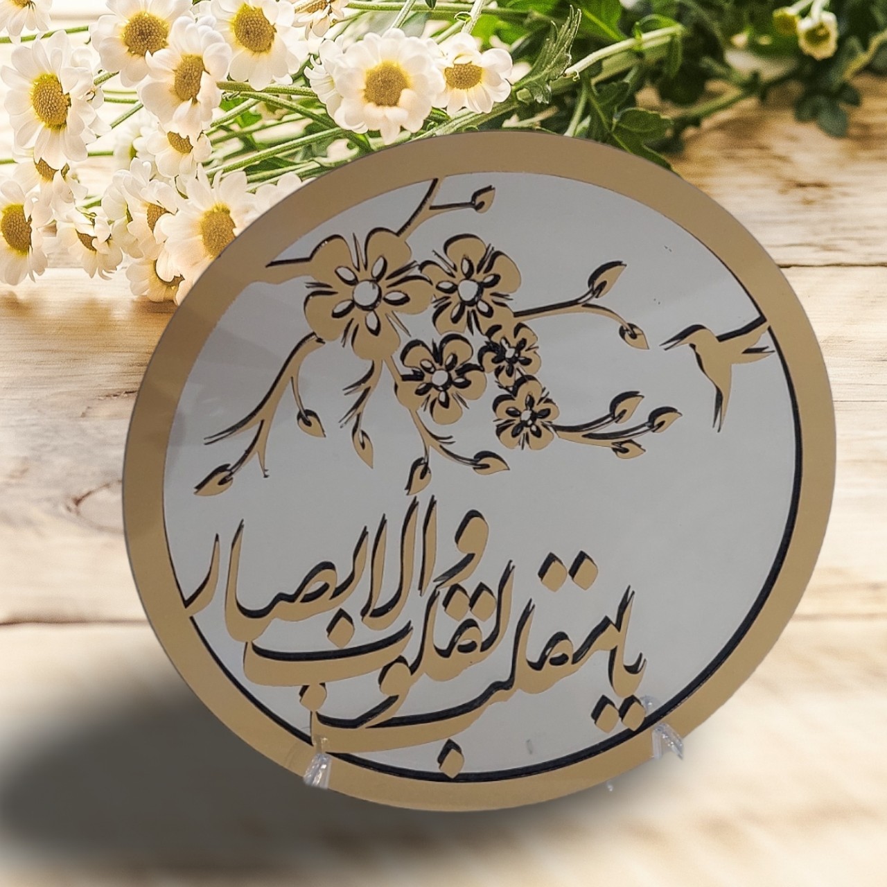 آینه لبه گرد همراه متن برجسته یا مقلب القلوب مولتی استایل قابل سفارش در رنگ نقره ای دارای پایه مجزا