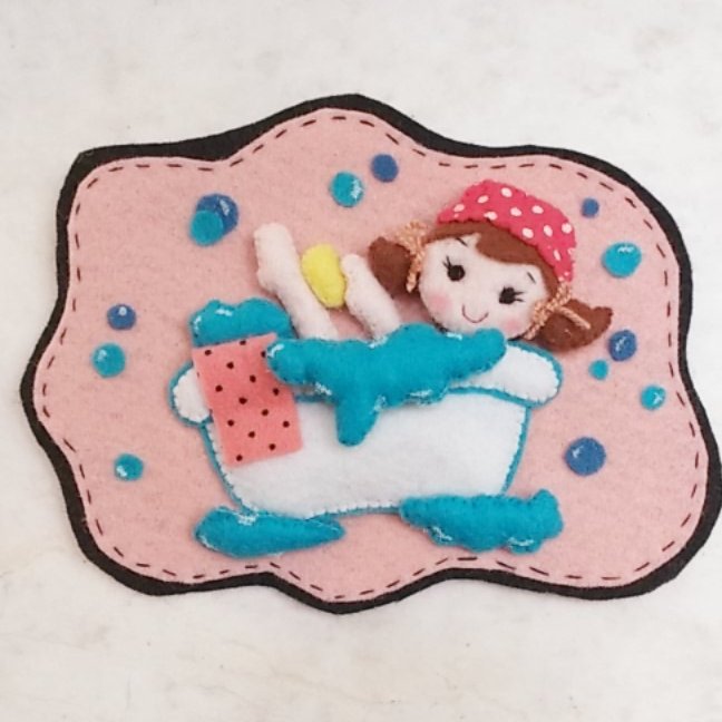 نشانگر حمام و دستشویی دست دوز نمدی با طرح عروسکی و رنگ بندی شاد زیبا و کاربری