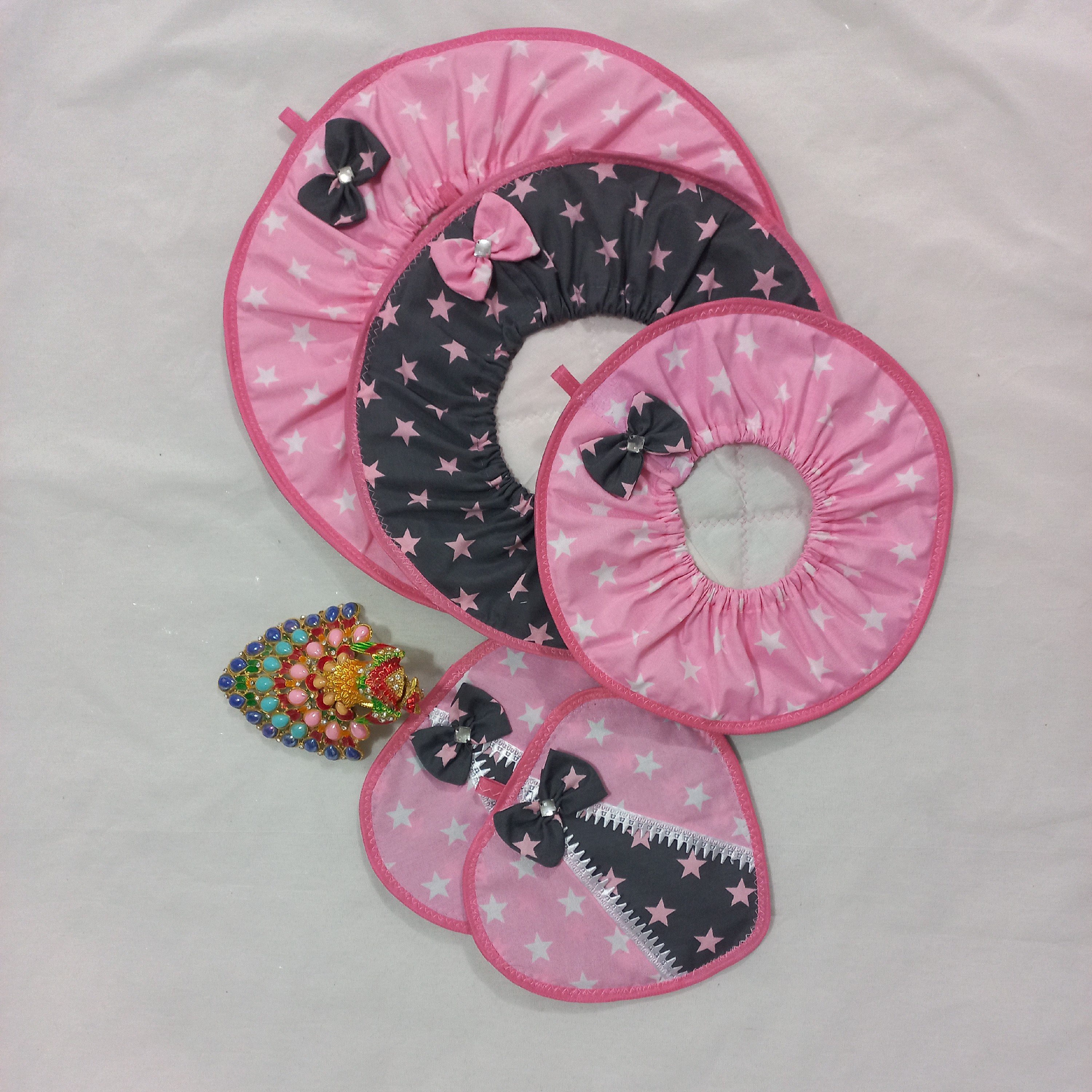 سرویس آشپزخانه پارچه ای ۱۴ تیکه با پارچه تترون اعلا شامل: پیش بند آشپزخانه سایز ۶۰ در ۷۵ سرویس دمی ساده در سه سایز ۲۳ و ۲۸ و ۳۳ نمگیر طرح دار مناسب برای روی کابینت سایز ۵۰ در ۱۰۰ نمگیر مستطیلی بزرگ در سایز ۱۰۰ در ۱۰۰ کیسه نان بدون دسته سایز ۷۰ در ۱۰۰ کیسه سبزی سایز ۳۰ در ۴۰ دستکش فر دستگیره طرح قلب زیر قابلمه ای سفره پاک کن کیف سفارش دوخت سرویس آشپزخانه با طرح و رنگ و جنس دلخواه شما پذیرفته می شود