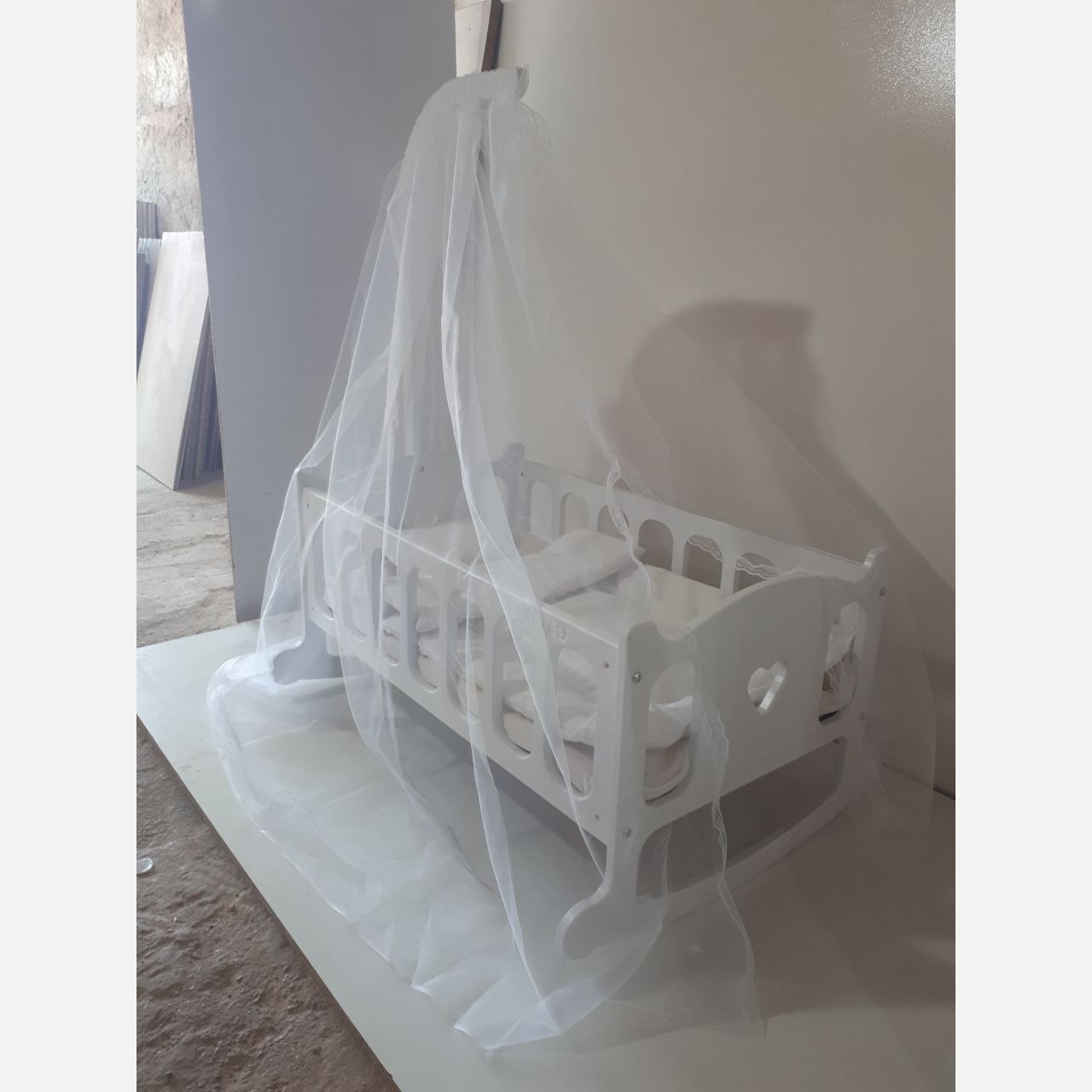 گهواره کودک مدل قلب- دارای تشک پتو بالشت و تور تخت-جنس ام دی اف وکیوم شده مبلمونسرا مدل 225205