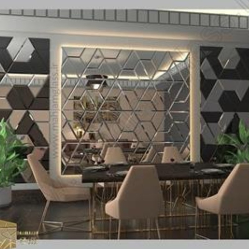 آینه دکوراتیو طرح سه وجهی در 6رنگ نقره ای شامپاینی مسی طلایی دودی و صورتی مبلمونسرا مدل 264503
