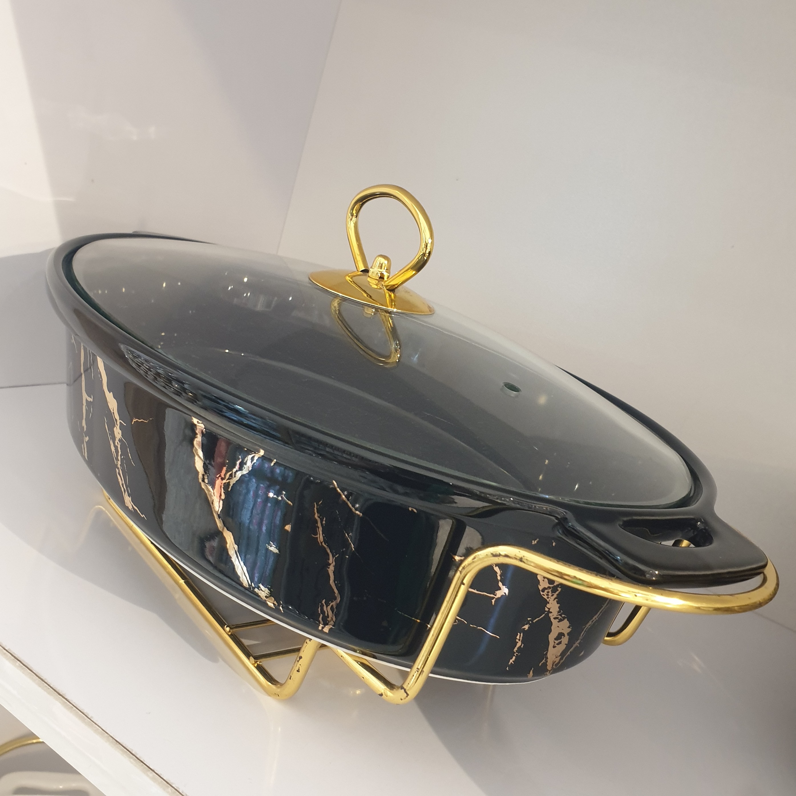 سوفله سرامیکی طرح ماربل کیفیت عالی رنگ طلایی ثابت😍😍 رنگ مشکی #لذت خاص بودن🤗