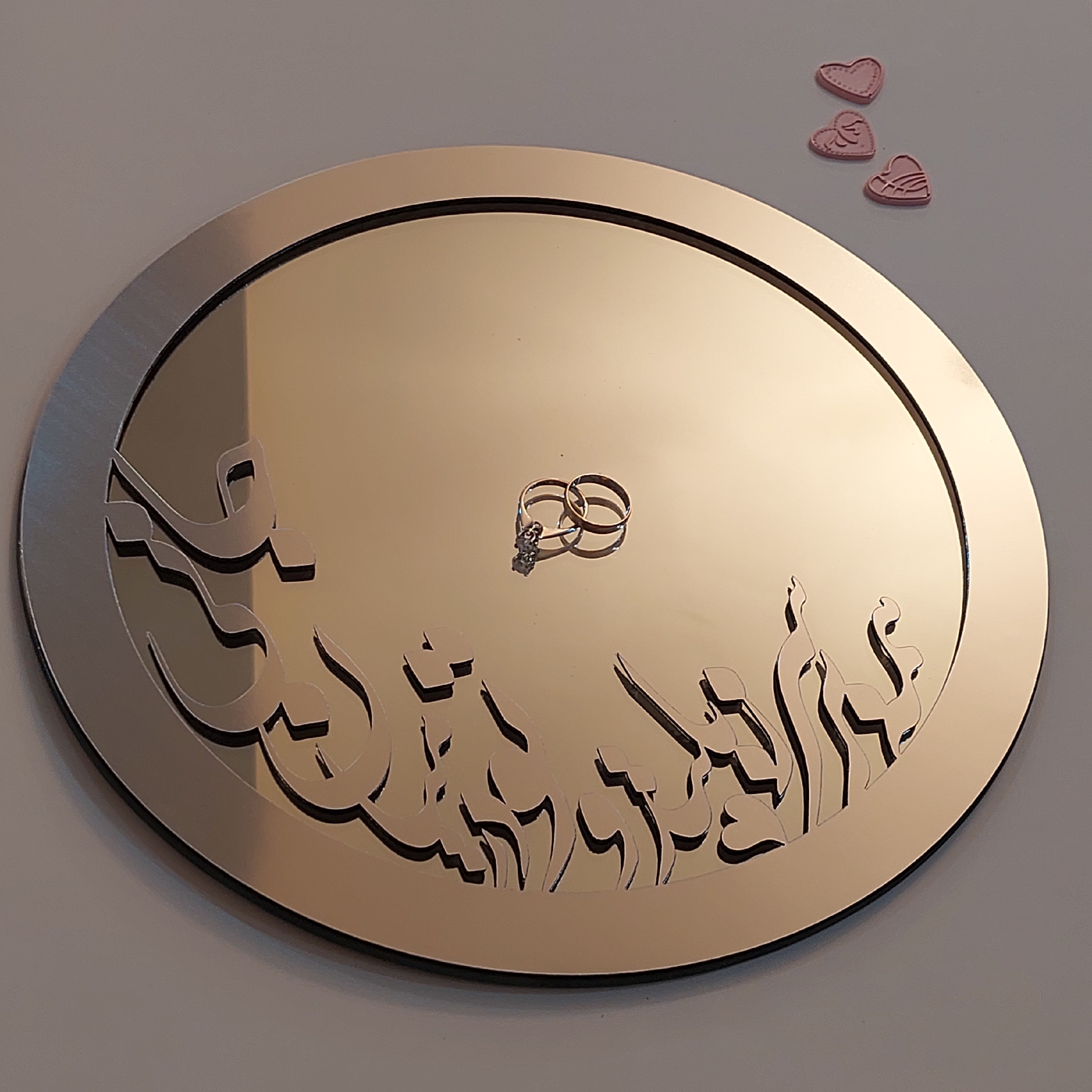 آینه رومیزی قطر بیست و پنج سانت با متن برجسته همه بر سر زبانند و تو در میان جانی مبلمونسرا مدل 262097