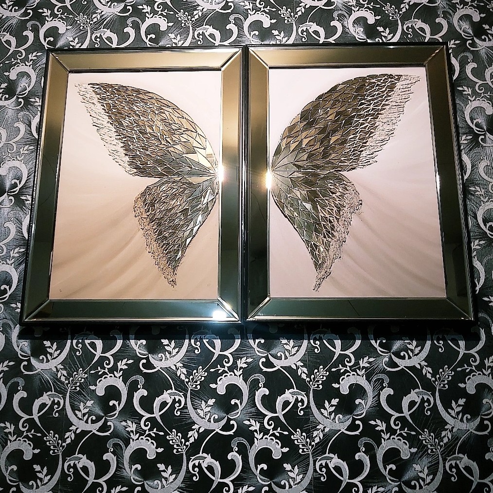 تابلو آینه ای طلایی پروانه دو تیکه کاردست شرکتی - تابلو آینه ای بزرگ پروانه - تابلو آینه ای دکوراتیو کدs653عالیجناب مبلمونسرا مدل 264376