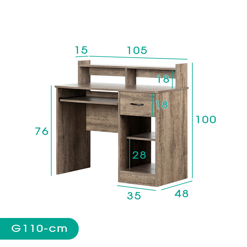 میز کامپیوتر مدل G110 با ظاهری ساده و زیبا، مناسب دکوراسیون منزل یا اداری با طراحی مدرن است. میز کامپیوتر مدل G110 دارای 1 طبقه ریلی برای کیبورد، 4 قفسه ، 1 کشو با طراحی خاص، مقاوم و در تنوع رنگی بالا می باشد. جنس محصول ام دی اف می باشد.