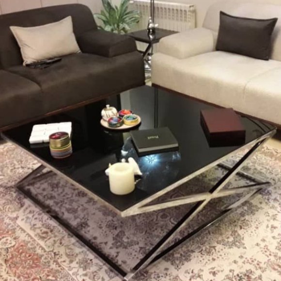 میز جلو مبلی ابعاد مستطیل 110*60 ابعاد مربع 90*90 فلز ابکاری استیل با صفحه شیشه سکوریت نشکن قابل سفارش با صفحا ام دی اف طرح سنگ