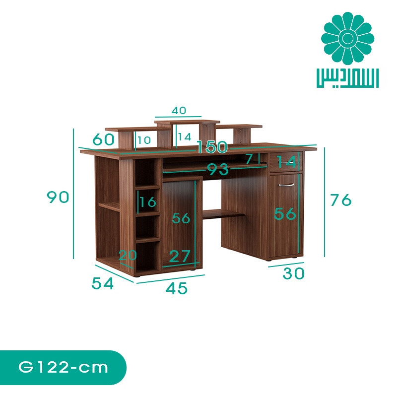 لطفا دقت فرمایید: ، طراح و تولید کننده اصلی این محصول با نام تجاری است. این محصول دارای لیبل می باشد. لطفا قبل از خرید نام فروشنده را بررسی فرمایید. میز کامپیوتر مدل G122 با ظاهری ساده و زیبا، مناسب دکوراسیون منزل یا اداری با طراحی مدرن است. میز کامپیوتر مدل G122 دارای 4 طبقه(3 استند مانیتور و 1 استند کیبورد)، 6 قفسه ، 1 کشو و 1 درب با طراحی خاص، مقاوم و در تنوع رنگی بالا می باشد. ابعاد: طول 150 سانتی متر - عرض 54 سانتی متر - ارتفاع 90 سانتی متر جنس محصول ملامینه می باشد.