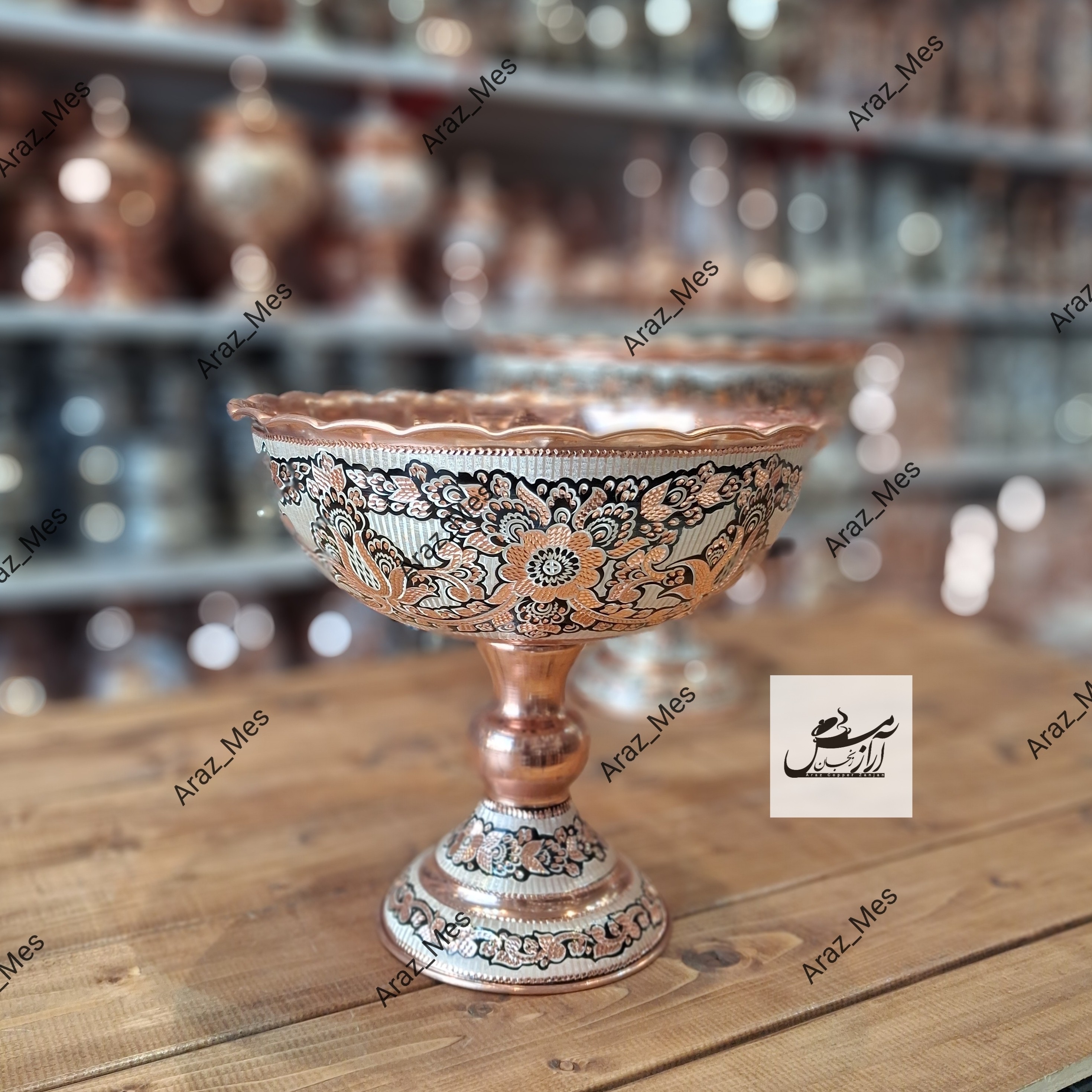 جام مسی نقره کوب سایز 4 نانو نقره کوبی شده توسط استادکاران درجه یک زنجان ارتفاع : 23 سانتی متر قطر : 25سانتی متر مناسب برای آجیل و میوه و ...