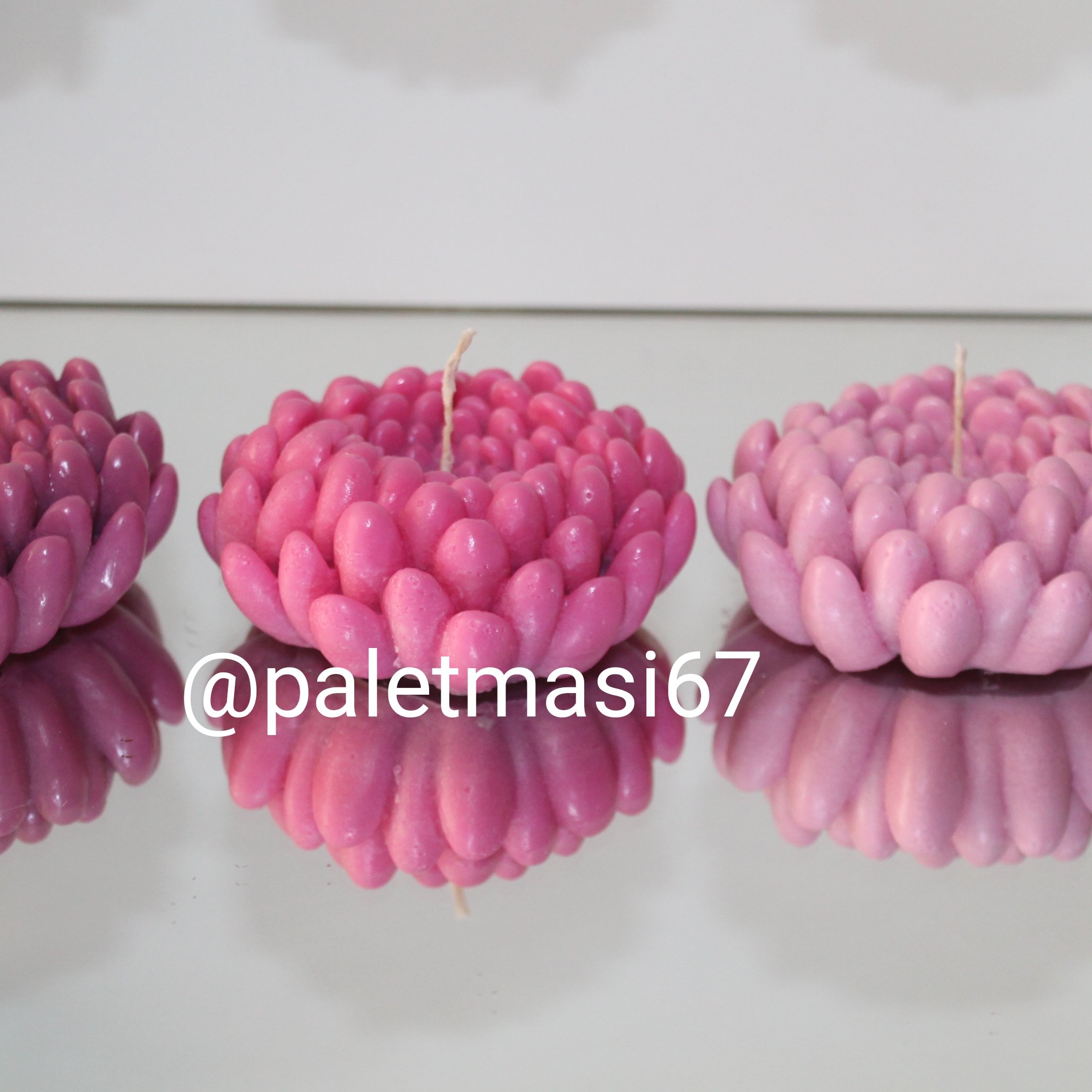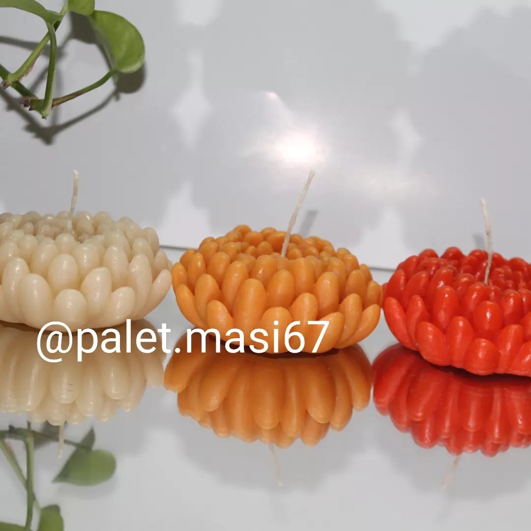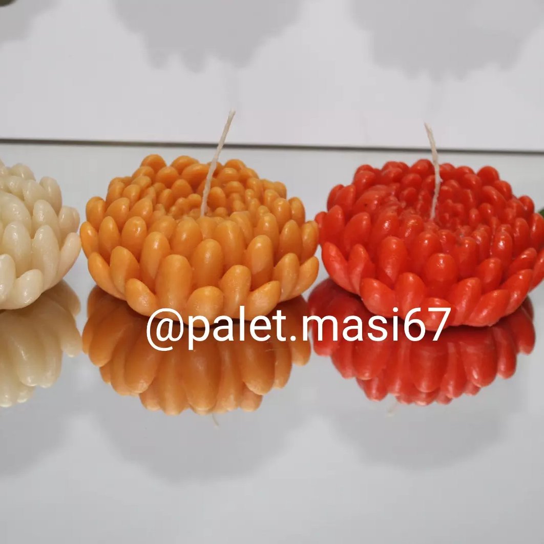 شمع گل داوودی سایز بزرگ قطر گل هشت سانتیمتر فیتیله تا پایین قابل سفارش در انواع رنگ