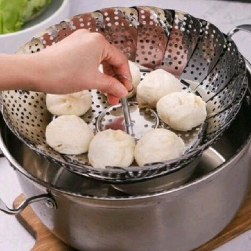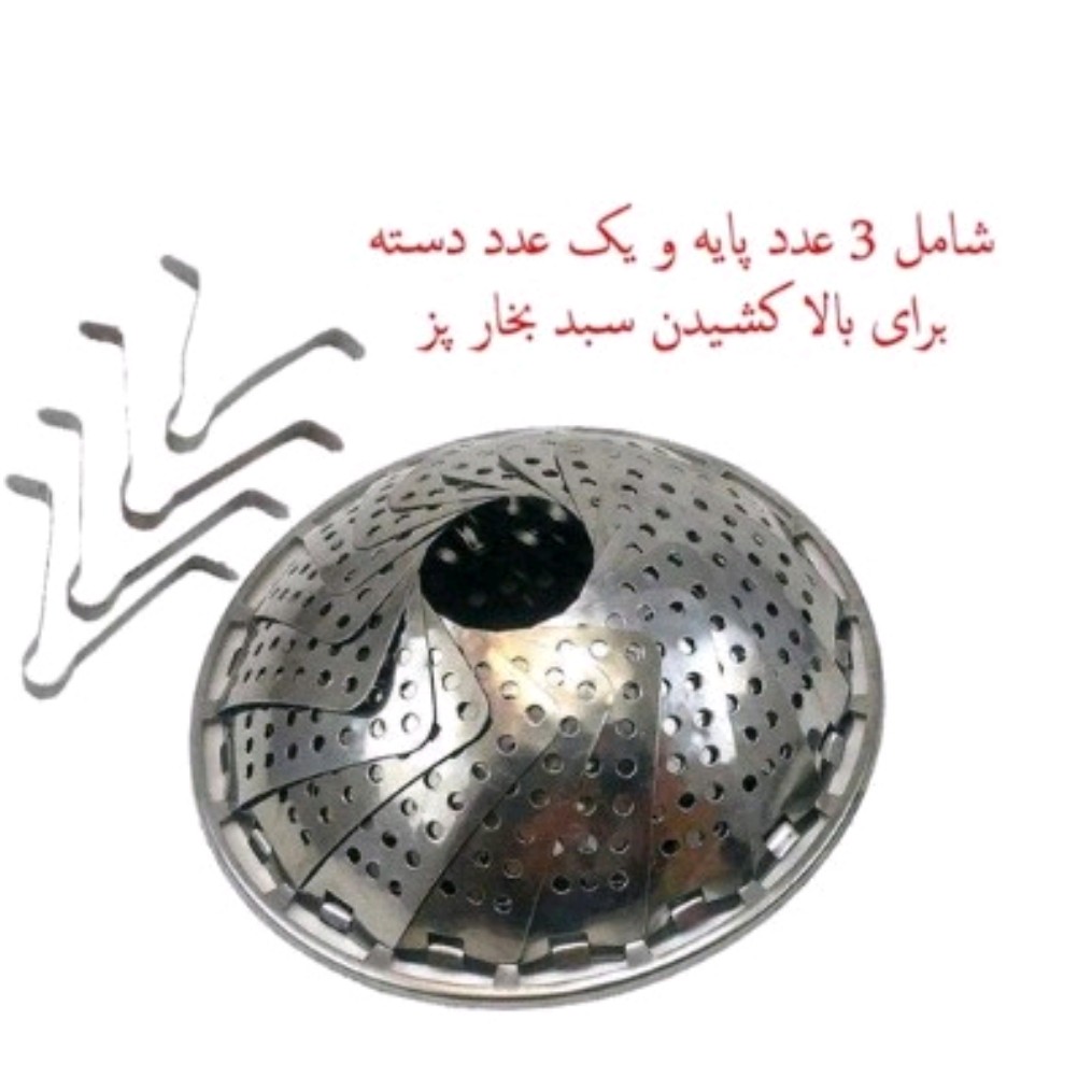 بخار پز استیل تاشو مناسب برای: بخارپز کردن ، شست و شو ، آبکشی و همچنین نگهداری مواد غذایی ، ابزاری جدید و در عین حال کاربردی برای استفاده در هر آشپزخانه ای است . این سبد از جنس استیل تولید شده و بارزترین ویژگی آن که وجه تمایز این محصول با دیگر نمونه های مشابهش می باشد را می بایست قابلیت تاشدن دیواره ها به سمت داخل عنوان کرد . خصوصیتی که محدودیت استفاده را برای همیشه از بین برده و به شما این قابلیت را می دهد تا از سبد درون هر ظرفی با هر ابعاد دهانه ای استفاده کنید ، تنها کافیست آن را درون ظرف قرار دهید ، دیواره ها به مقداری که ابعاد محفظه ظرف باشد به سمت داخل جمع و یا به سمت بیرون باز می شوند تا بتواند به صورت کامل درون محفظه جای گیرد . سوراخ های تعبیه شده بر روی بدنه سبد ، قابلیت عبور آسان آب و همچنین بخار آب را فراهم می آورد ، بنابراین به سادگی مواد غذایی روی سبد در معرض بخار داخل ظرف قرار می گیرند . در زیر سبد سه پایه می باشد که فاصله ارتفاعی معادل 3.5 سانتی متر از سطح ظرف را برای سبد ایجاد می کنند ، بنابراین به سادگی می توان درون ظرف آب ریخت برای بخارپز شدن ، بدون اینکه مواد درون آن غوطه ور شوند . علاوه بر بخارپز کردن ، از این محصول می توان برای شست و شو ، آبکشی و همچنین نگهداری مواد غذایی مختلف همانند یک سبد معمولی استفاده نمود . امکان استفاده در آشپزخانه منزل ، سفر ، کمپینگ و یا هر جای دیگری که نیاز داشته باشید ، همگی گواه بر عدم وجود محدودیت خاصی در استفاده از سبد بخارپز دستی است .