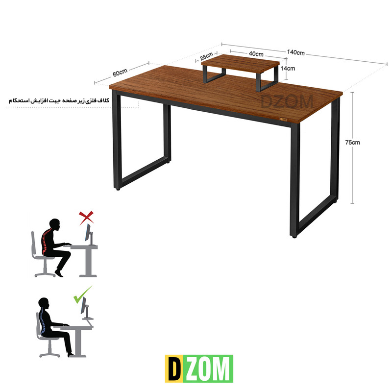 میز DZom مدل CD_LI100_140_BRN محصولی سبک، شیک و در عین حال جذاب و کارآمد از سری تولیدات است. این میز که قابلیت استفاده به عن میز تحریر، میز کامپیوتر، میز جلسه، میز کار و حتی به عن یک میز اداری را دارد، از رنگ رویه الکترو با ی و دوام بالا ساخته شده است. همچنین پایه های پیچی، قابلیت تنظیم نسبت به سطح زمین را دارد تا بهترین تراز جهت جلوگیری از تکان خوردن را ایجاد نماید. صفحه میز از جنس MDF درجه یک برجسته طرح چوب و به رنگ قهوه ای است. این محصول با طول 140cm، عرض 60cm و ارتفاع 75cm عرضه میشود. به این نکته توجه شود که تنوع رنگ انتخابی کالا تنها مربوط به رنگ پایه های فلزی است.