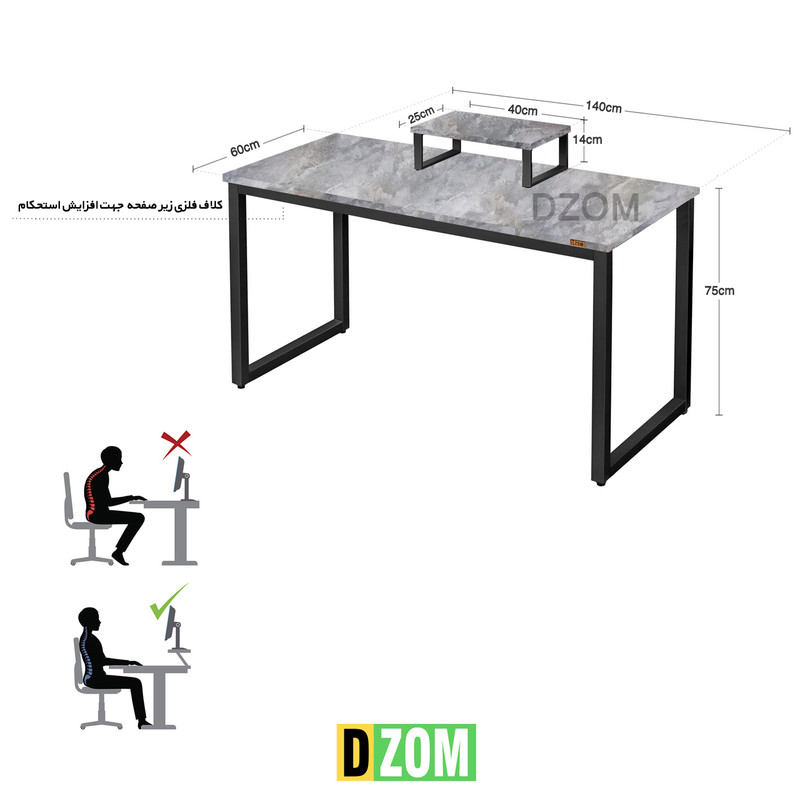 میز DZom مدل CD_LI100_140_GR محصولی سبک، شیک و در عین حال جذاب و کارآمد از سری تولیدات است. این میز که قابلیت استفاده به عن میز تحریر، میز کامپیوتر، میز جلسه، میز کار و حتی به عن یک میز اداری را دارد، از رنگ رویه الکترو با ی و دوام بالا ساخته شده است. همچنین پایههای پیچی، قابلیت تنظیم نسبت به سطح زمین را دارد تا بهترین تراز جهت جلوگیری از تکان خوردن را ایجاد نماید. صفحه میز از جنس MDF درجه یک به رنگ طوسی است. این محصول با طول 140cm، عرض 60cm و ارتفاع 75cm عرضه میشود. به این نکته توجه شود که تنوع رنگ انتخابی کالا تنها مربوط به رنگ پایههای فلزی است.
