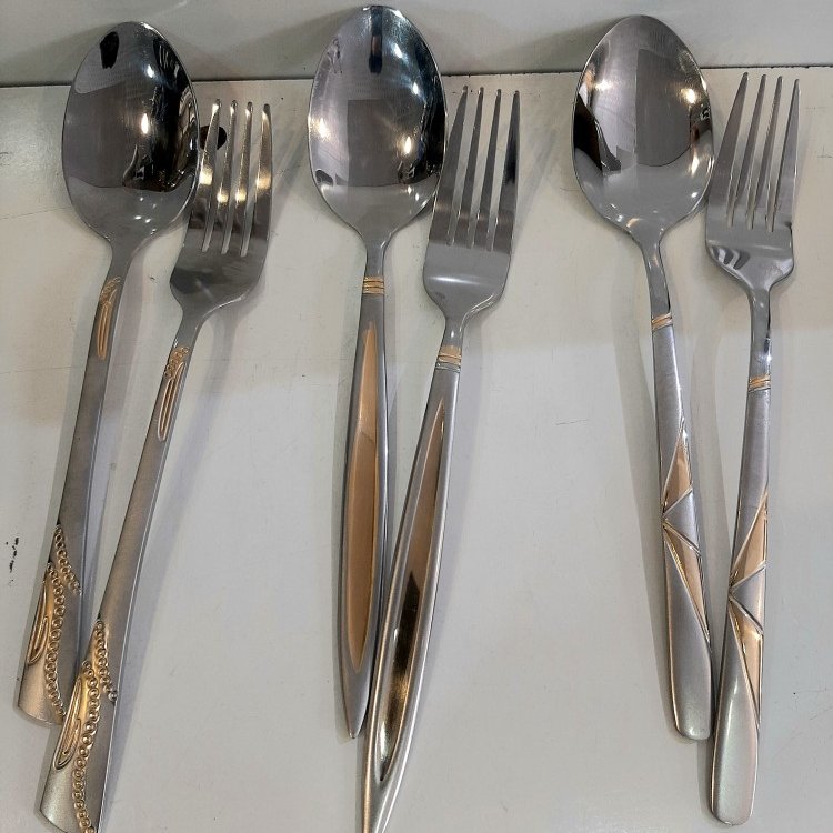 پخش انواع سرویس قاشق و چنگال ۱۲۸پارچه در رنگهای استیل و طلایی بصورت ۲۴نفره قاشق و چنگال ۲۴نفره کاردو چنگال ۱۲نفره قاشق بستنی ۱۲نفره قاشق مربا ۱۲نفره قاشق چای ۱۲نفره قاشق شربت ۱۲نفره ملاقه بزرگ دو عدد ملاقه کوچک دو عدد قاشق روغن دو عدد کفگیر دو عدد جهیزیه کامل عروس و داماد بصورت نقدو اقساط مشهد نبش هدایت ۴ قصرسوگا