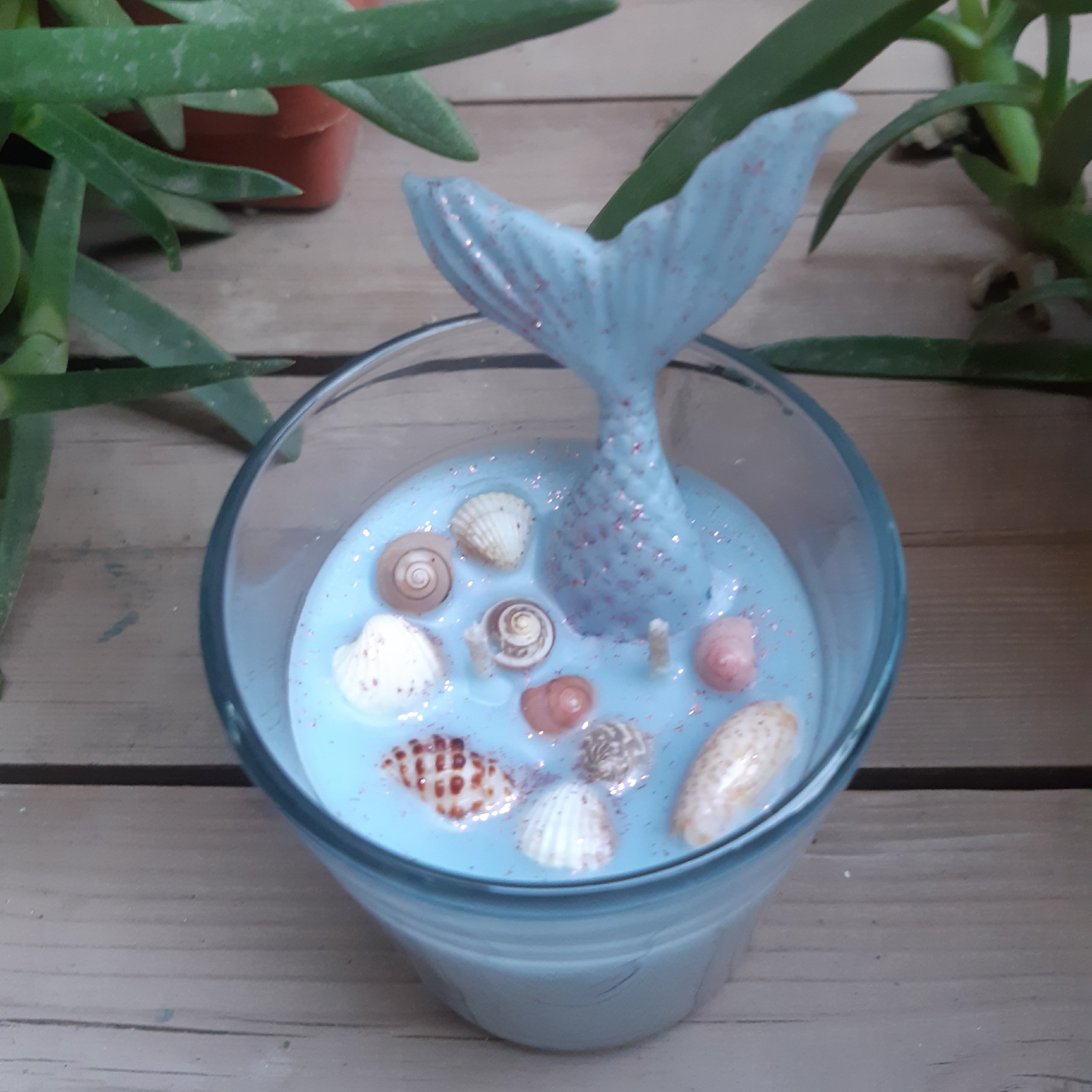شمع لیوانی دریایی به رنگ آبی پاستیلی هستش اما اگر دوست داشتید رنگ دیگه ای هم باشه میتونید سفارش بدید
