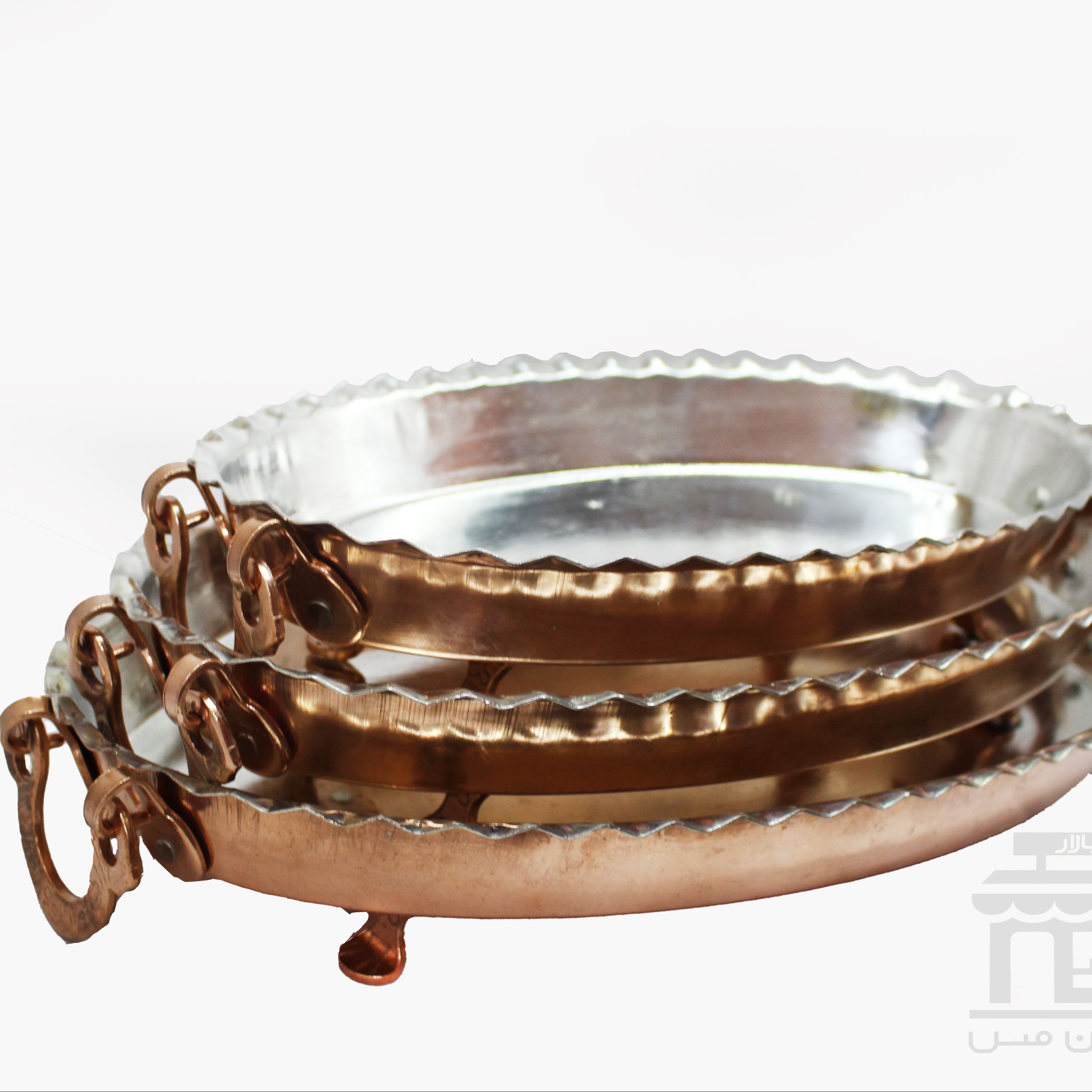 *این محصول در 3 سایز طراحی شده است و شما متناسب با کارکردی که مورد نظرتان است میتوانید خریداری بکنید *این کار دارای دسته های بسیار زیبا میباشد و روی دسته های ان طرح زیبایی نقش بسته است *کار چکش کاری نشده است و به صورت کاملا صاف طراحی شده است *به علت اینکه در درون این ظروف غذا سرو میشود داخل آن قلع کاری شده است *کار نازک نمیباشد و از ضخامت مناسبی برخوردار است *ارتفاع محصول : 6.5 سانتی متر * طول محصول : 36 سانتی متر * عرض محصول : 19 سانتی متر * وزن محصول : 950 گرم