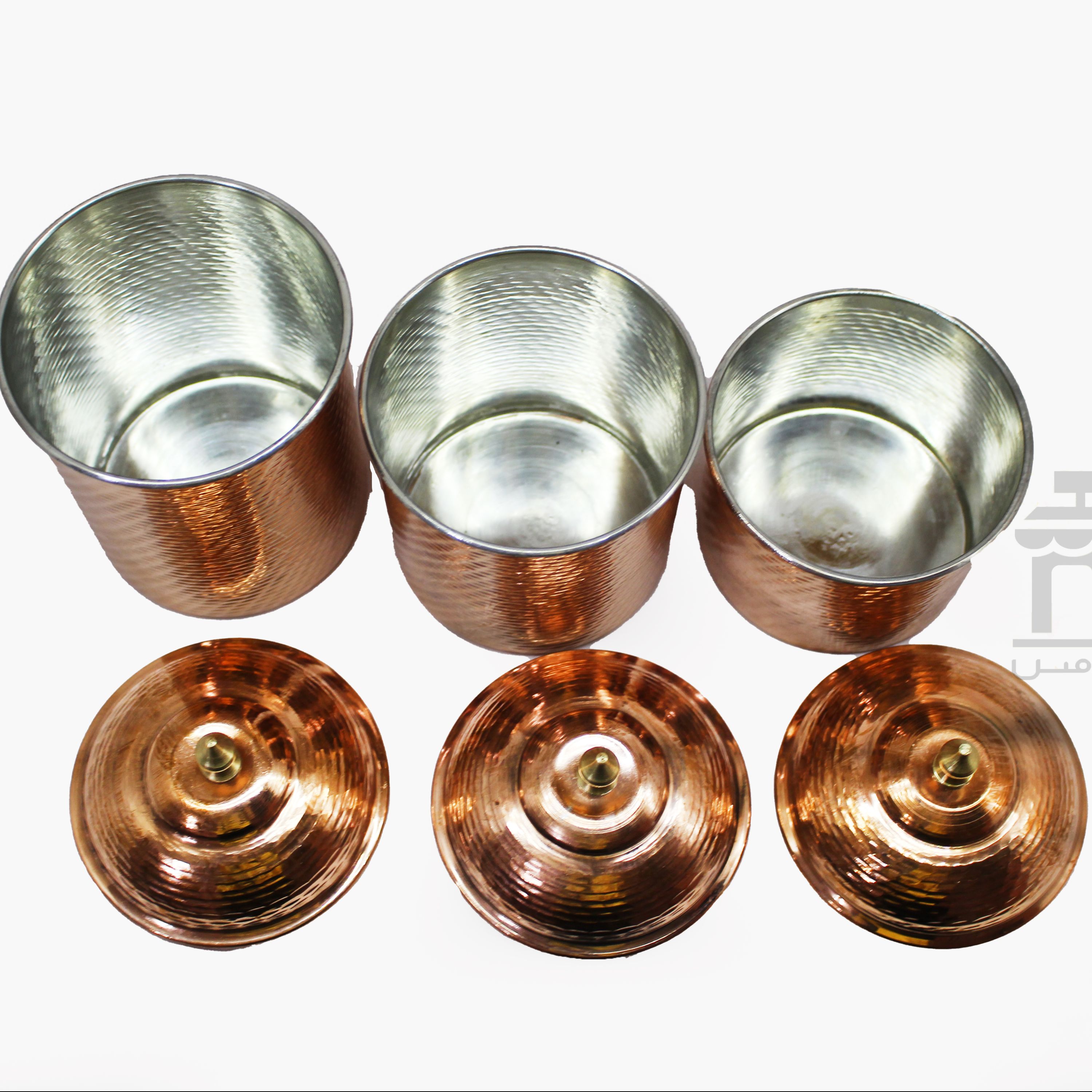 این محصول را هم میتوان به عنوان جا ادویه استفاده کرد و هم میتوان به عنوان پا سماوری استفاده کرد این محصول چکش کاری شده است و مس با کیفیتی در آن به کار رفته است ارتفاع سایز 1 پک : حدودا 12 سانتی متر ارتفاع سایز 2 پک : حدودا 15 سانتی متر ارتفاع سایز 3 پک : حدودا 16 سانتی متر وزن کلی ست : حدود 800 گرم قطر دهانه 1 : 8.5 سانتی متر قطر دهانه 2 : 7.5 سانتی متر قطر دهانه 3 : 8.3 سانتی متر