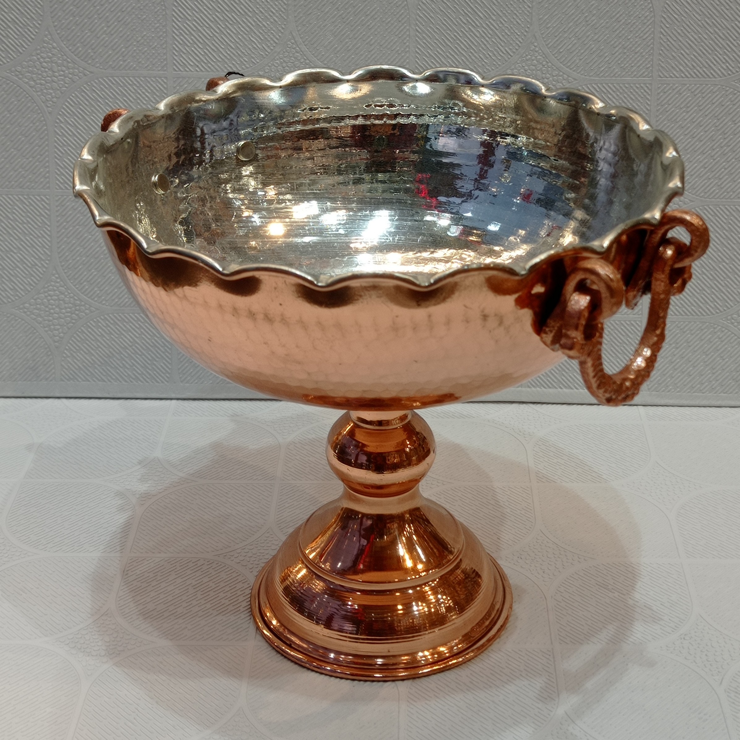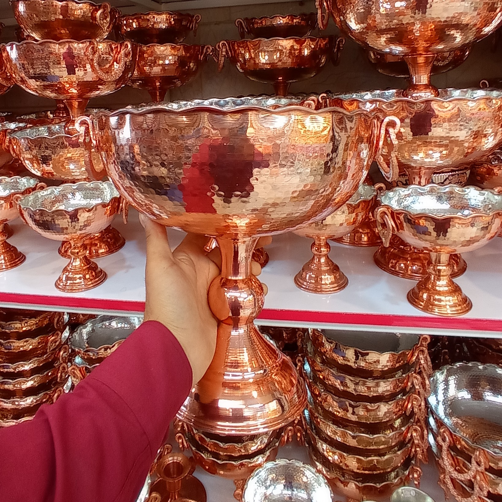 جام مسی گوشواره دار چکشی سایز ۵ نانو برنددرجه یک ارتفاع : ۲۷ سانتی متر قطر : ۲۸ سانتی متر وزن : ۱/۱۰۰کیلو گرم مناسب برای میوه ، آجیل و ...