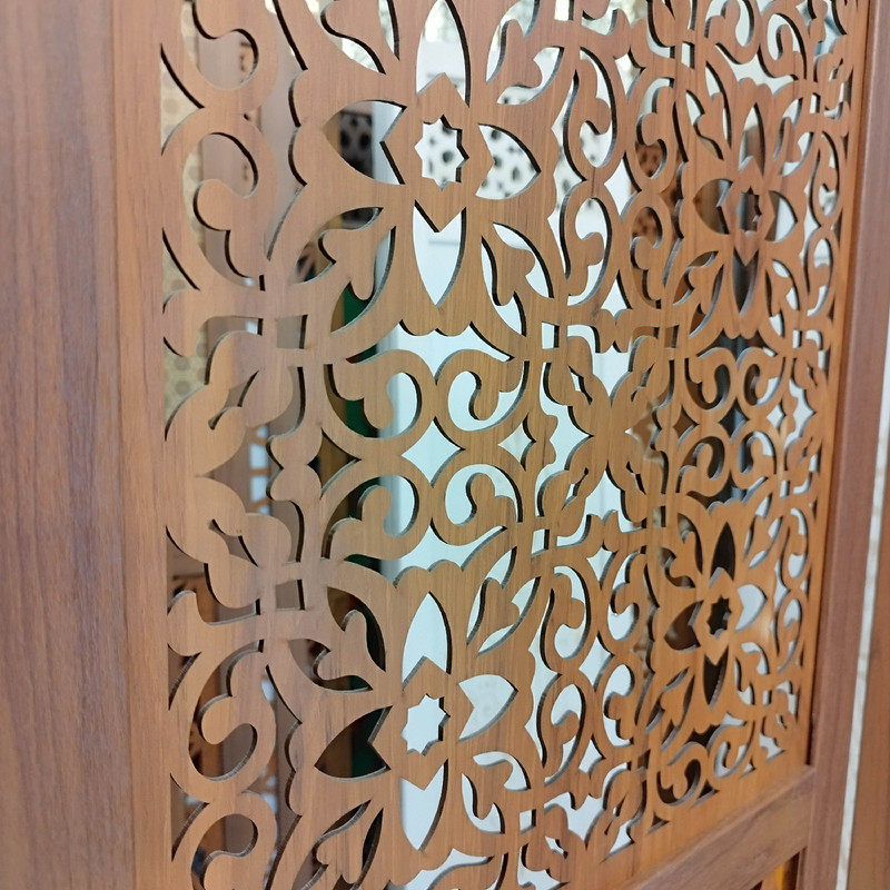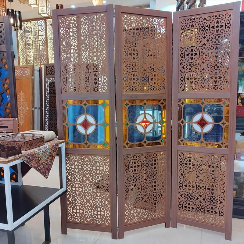 قسمت وسط این پارتیشن ، سه لایه بوده و طلق رنگی بصورت تکه تکه کار شده و وسط دولایه ام دی اف برش خورده قرار گرفته ، قسمتهای بالایی و پایینی پارتیشن بصورت توری بوده و کل پارتیشن به طرف مقابل دید دارد ، به این معنی که پشت پارتیشن مشخص هست و صرفا جهت زیبایی و جداسازی محیطهای کاربرد دارد که نیاز به محدود کردن دید به طرف مقابل نباشد. کد STG4C mc مجموعه 3 عددی از سری پارتیشن های تولیدی xxx صنایع چوبی استار xxx جهت جداسازی فضاهای با کاربرد های مختلف در منازل و فروشگاهها میباشد .