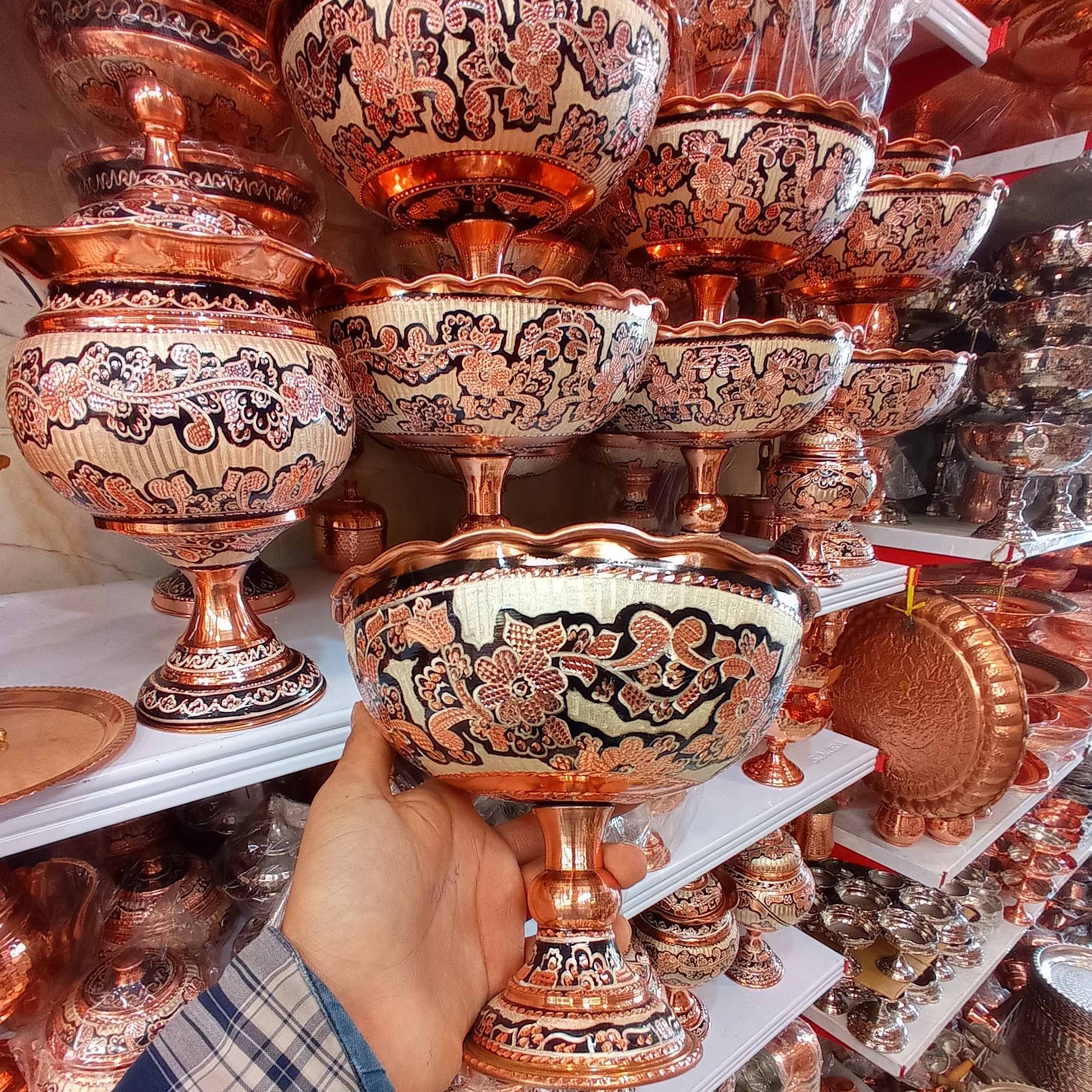 جام آجیل خوری و شکلات خوری نقره کوب مسی سایز 2 نانو مبلمونسرا مدل 265455
