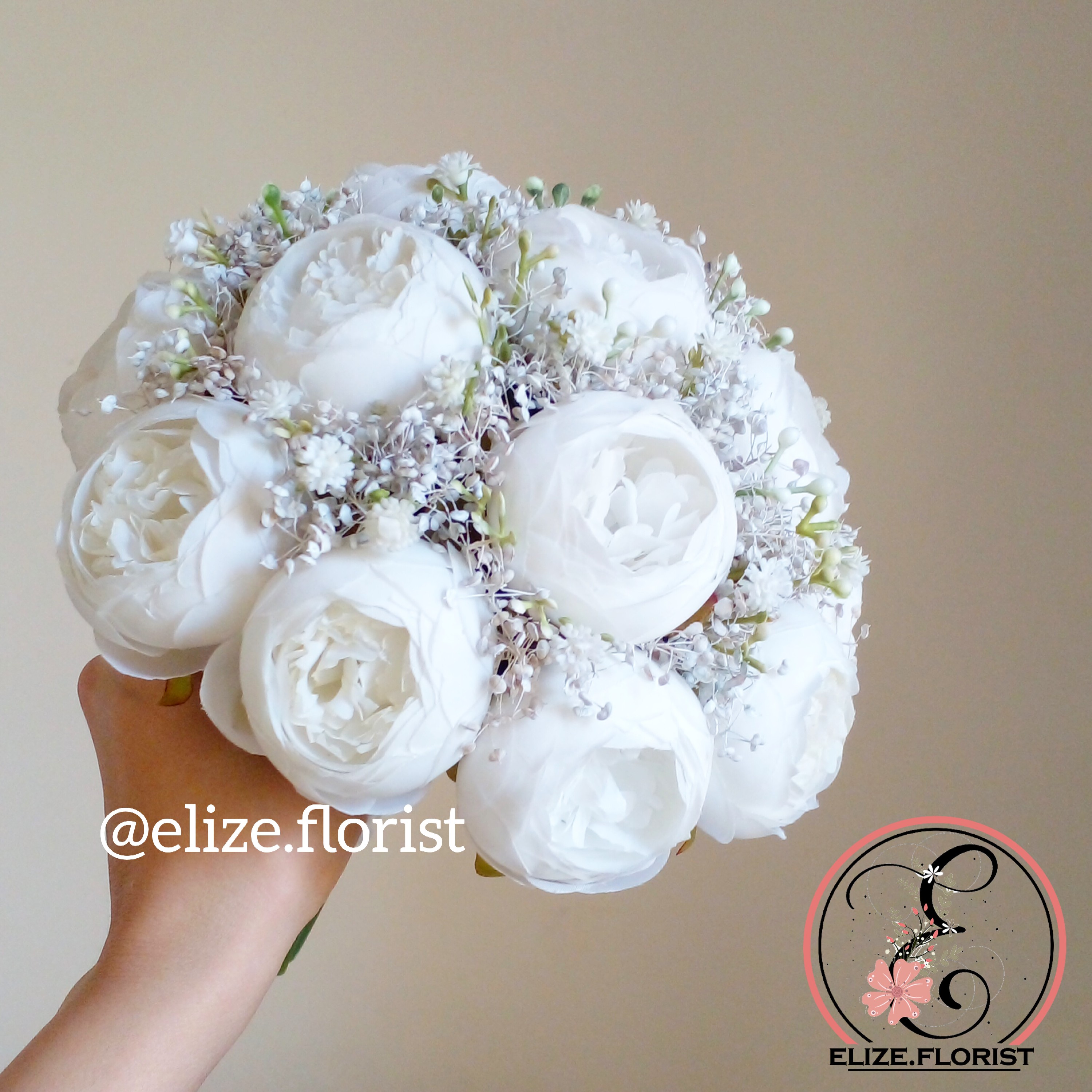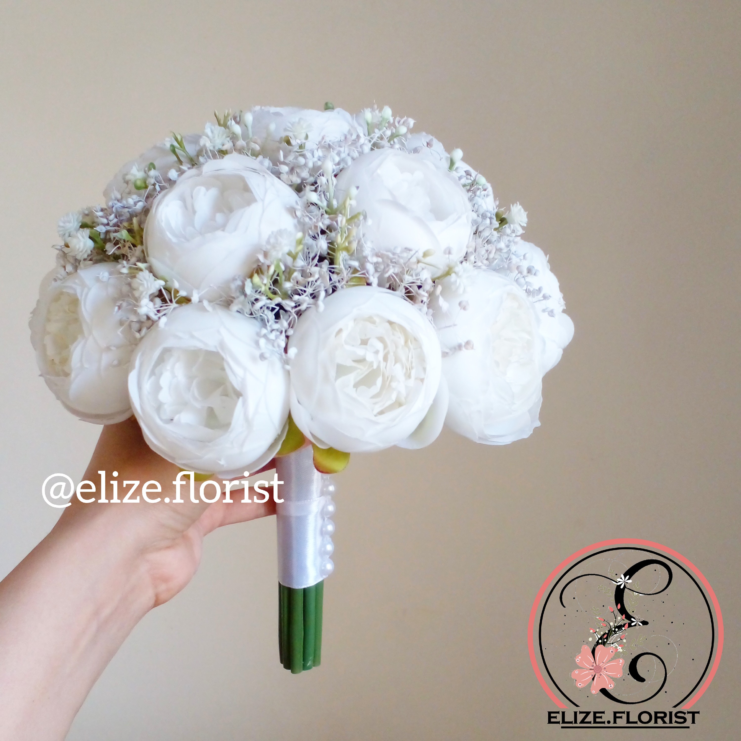 دسته گل عروس پئونی سفید ، دسته گل ، دسته گل مصنوعی مبلمونسرا مدل 258921
