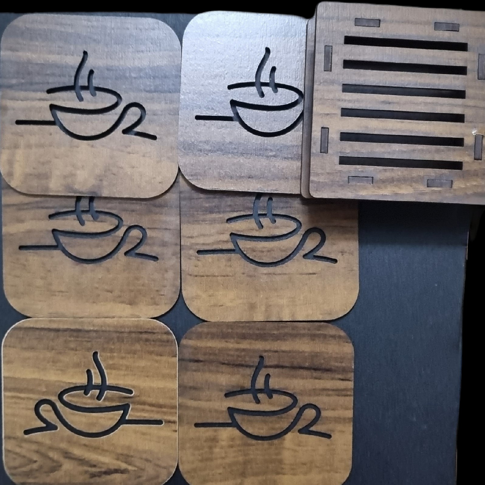 زیر لیوانی چوبی جنس MDFشش عددی همراه با پایه رنگ قهوه ای مبلمونسرا مدل 299133