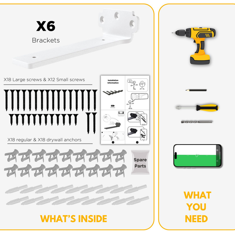 راکتهای شلف دیواری دینیال (پک 6 عددی، طول 25 سانتیمتر) از فلز ضخیم و مستحکم ساخته شدهاند و توانایی تحمل وزن تا ۷۵ کیلوگرم را دارند، بنابراین پشتیبانی قوی و با دوام برای شلفهای شما فراهم میکنند. پوشش رنگ کورهای باعث مقاومت در برابر خط و خش و زنگزدگی میشود و طول عمر محصول را تضمین میکند. طراحی دقیق با زاویه ۹۰ درجه، شلفها را کاملاً تراز نگه میدارد و از لغزش یا کج شدن وسایل جلوگیری میکند. این براکتها با انواع چوب ها سازگار بوده و نصب آنها روی دیوارهای چوبی، گچی و بتنی به راحتی انجام میشود. پک شامل تمامی اقلام موردنیاز نصب از جمله پیچ، رولپلاک و ابزار لازم است و نصب شلفها را سریع و ان میکند. این براکتها برای ایجاد فضای ذخیرهسازی در آشپزخانه، گاراژ، حمام یا دفتر کار ایدهآل هستند و به شما کمک میکنند وسایل، ابزار و کتابها را مرتب و منظم نگه دارید، در حالی که ظاهر مدرن و مینیمال به دکوراسیون شما اضافه میکنند.