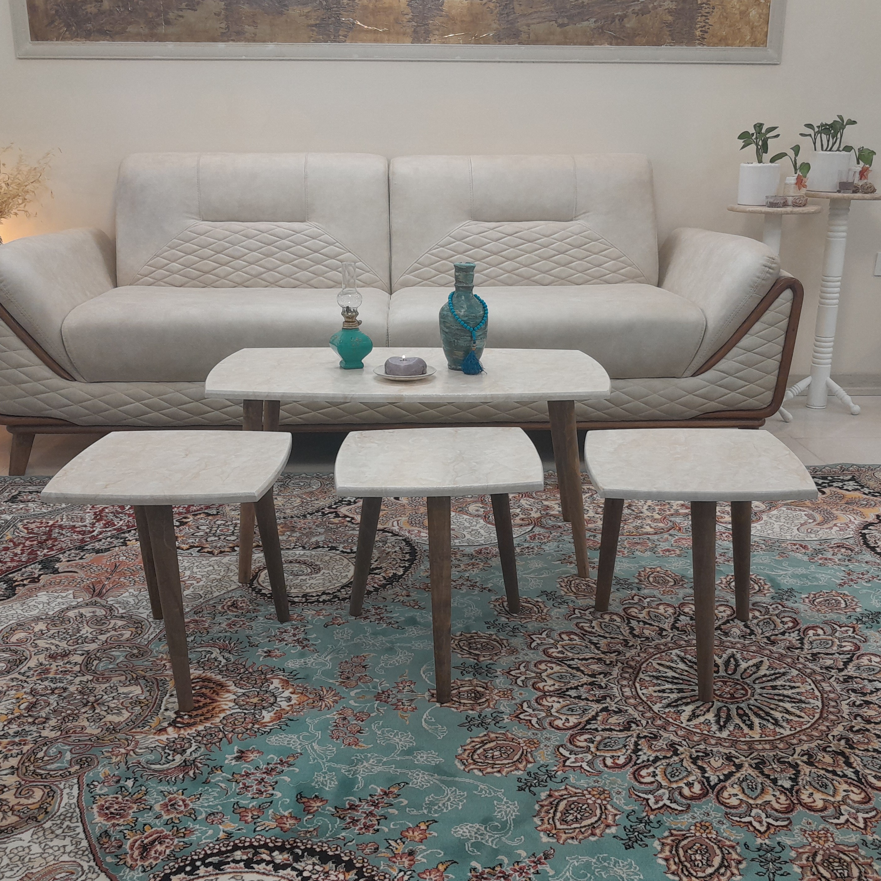 میز جلو مبلی مستطیل کرم طرح سنگ 4تکه هزینه ارسال با مشتری کمترین قیمت میزجلومبلی میز عسلی میزعسلی میز مبل مبلمونسرا مدل 221216