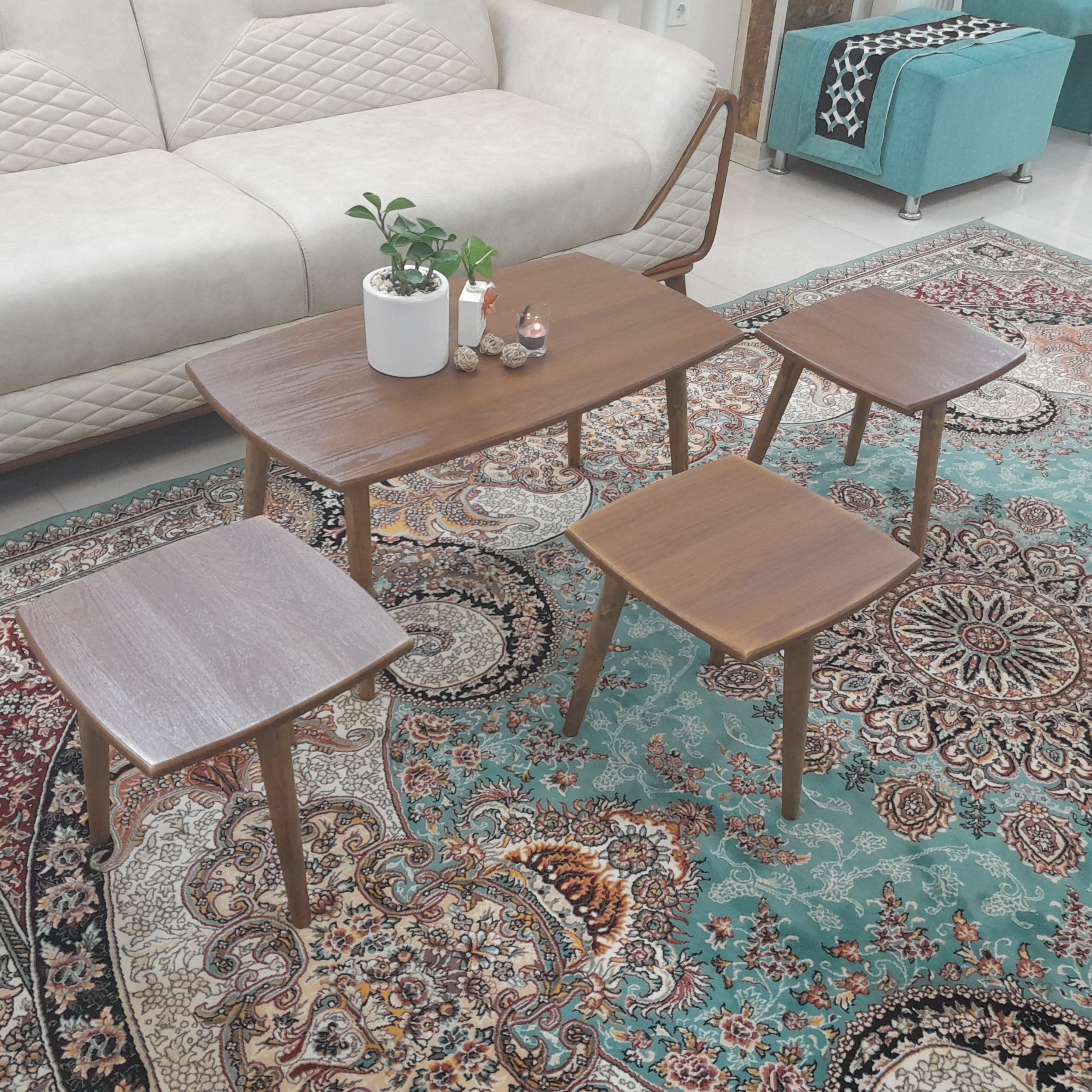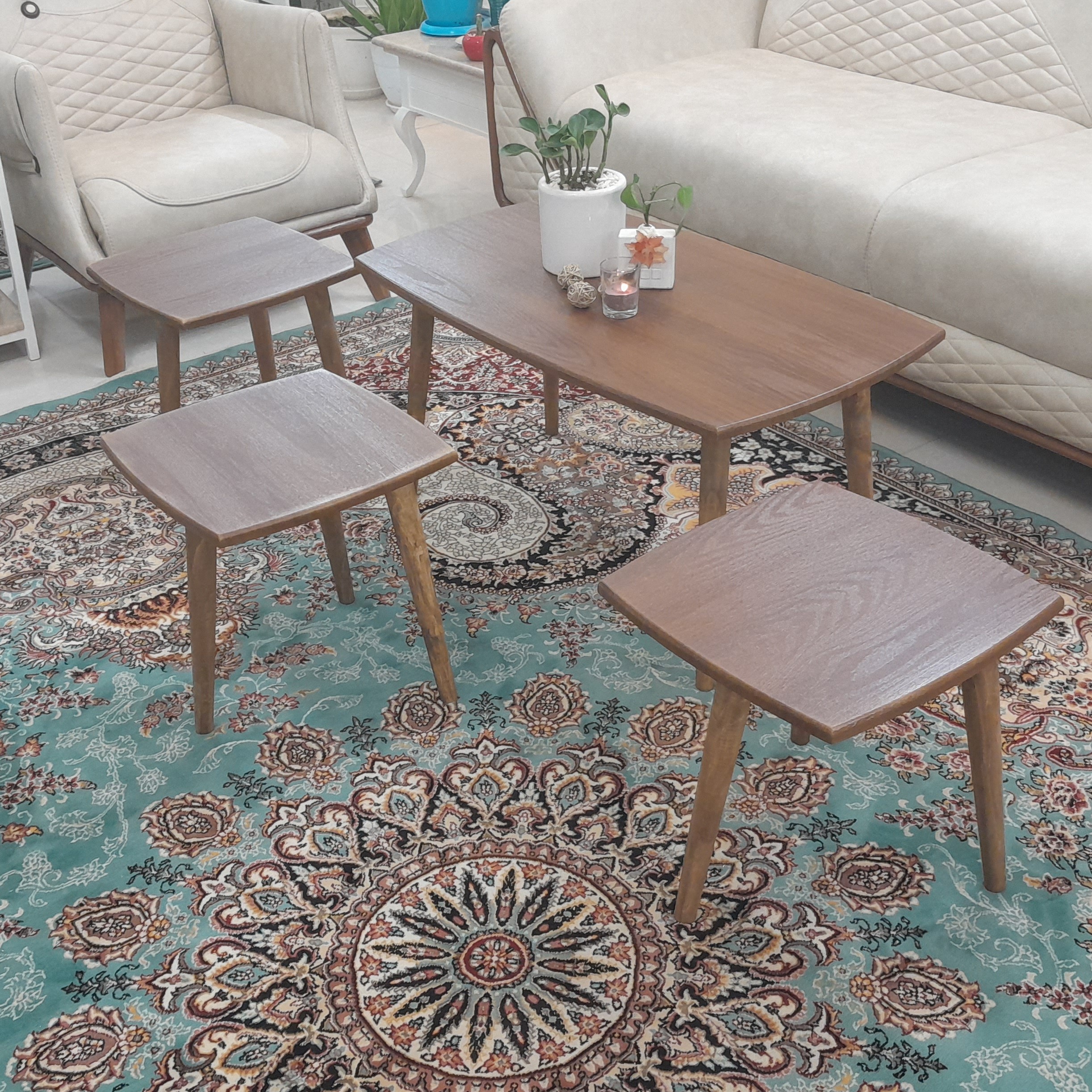 میز جلو مبلی مستطیل قهوه ای 4تکه هزینه ارسال با مشتری کمترین قیمت میزجلومبلی میز عسلی میزعسلی میز مبلمونسرا مدل 223375
