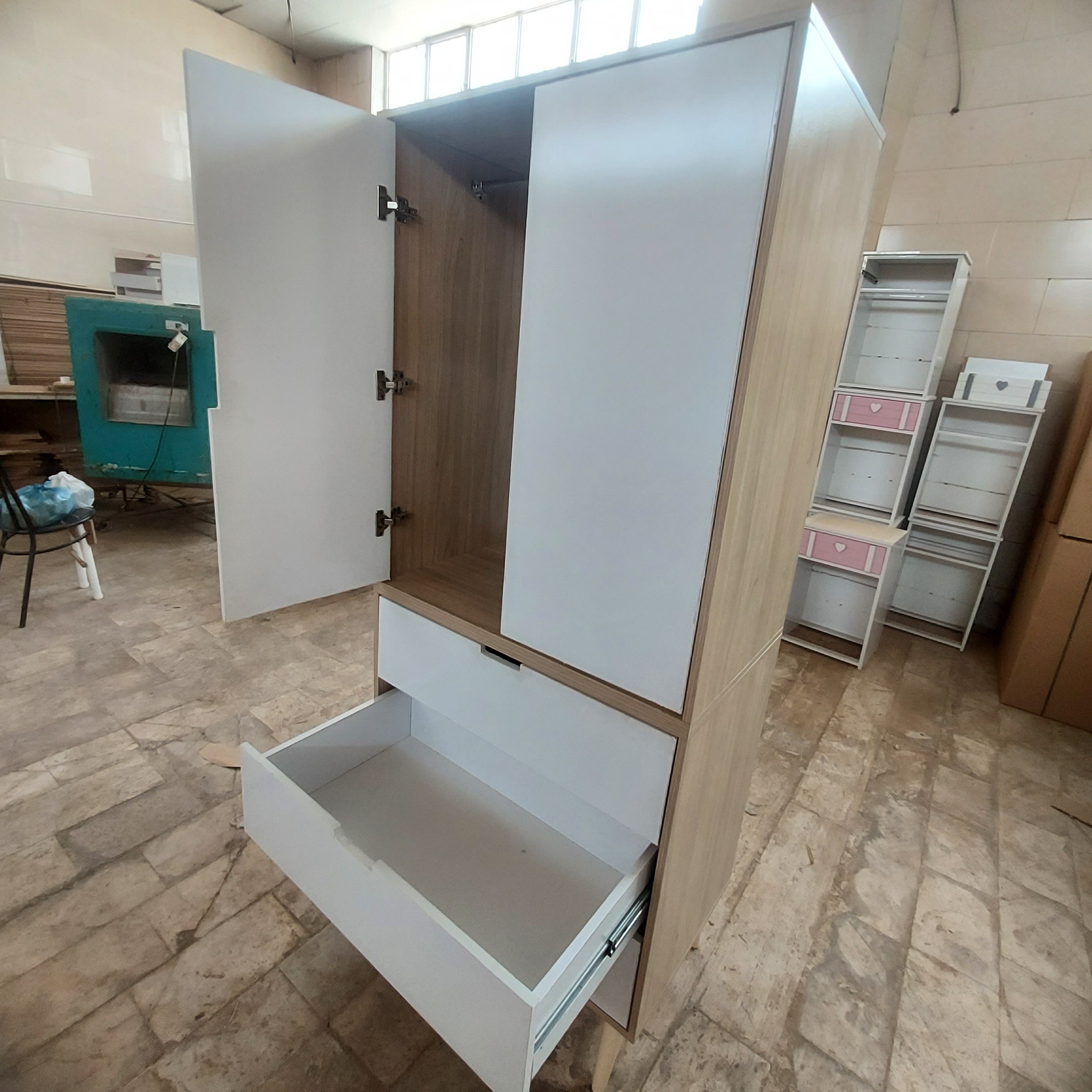 ام دی اف کشو ها ریلی سه زمانه درب آرام بند دارای رگال لباس دارای چفت درب پایه ها چوب