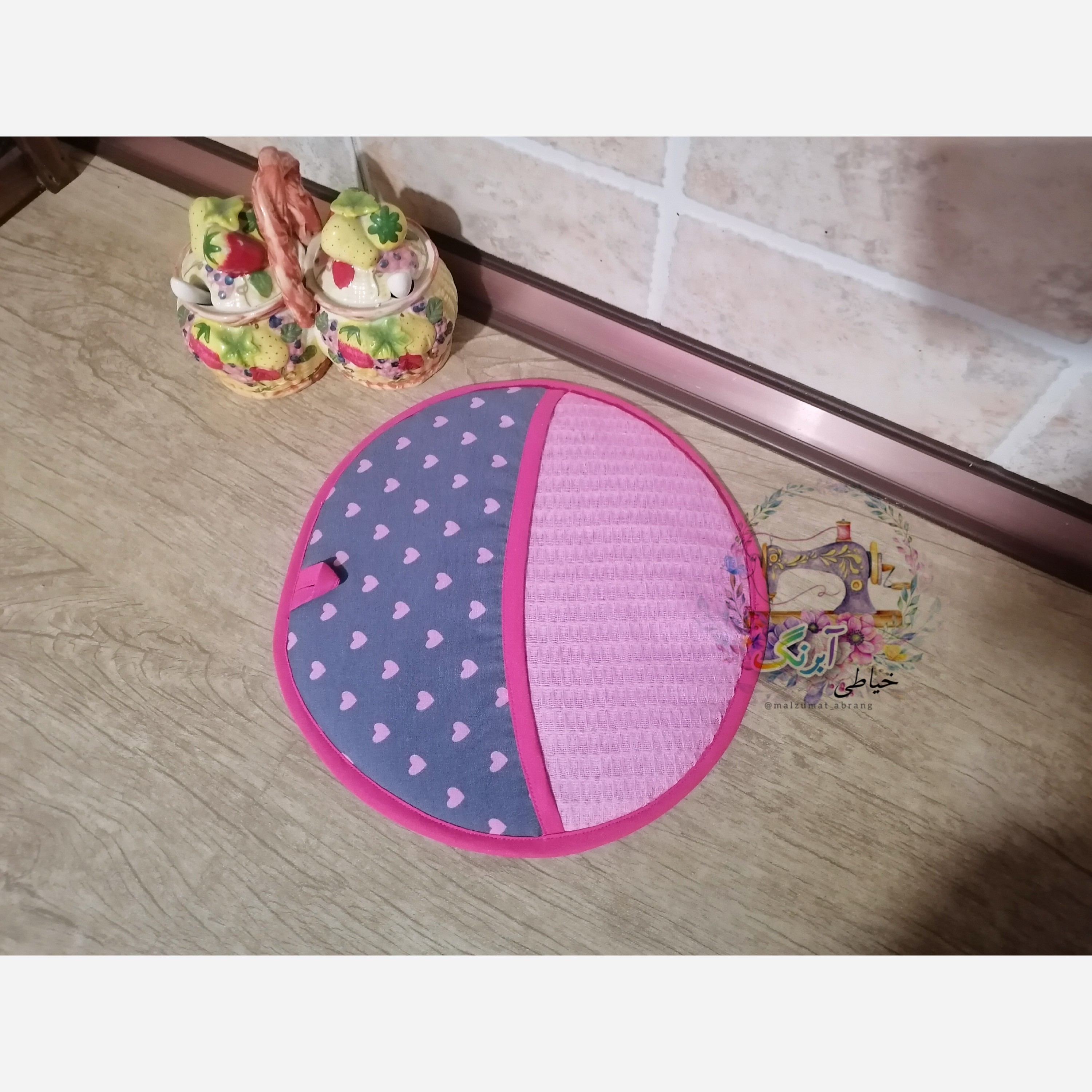 دمکنی قابلمه سایز متوسط سه لایه شامل؛ دو لایه پارچه و یک لایه پشم شیشه کوبیده شده دور دوزی شده با نوار اریب کتان نخ
