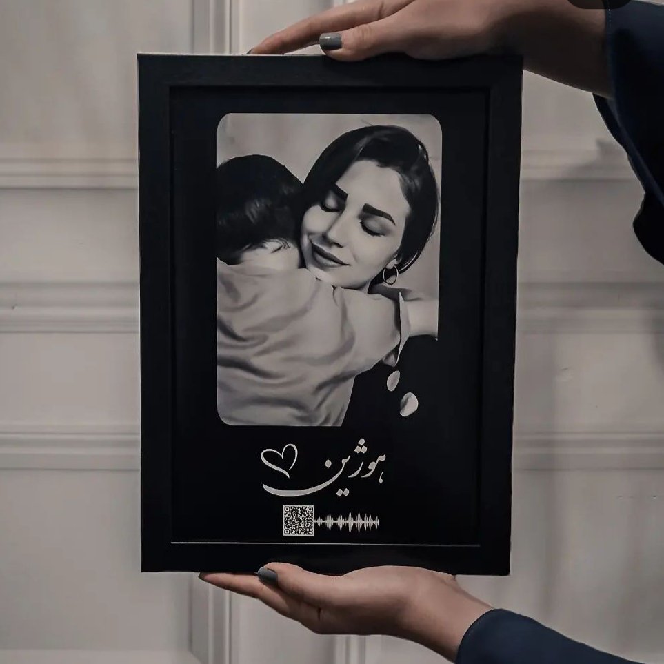 قاب موزیکال مادر و فرزند با عکس دلخواه خودتون و کوچولوی ناز تون شما میتونید صدای خودتون رو هم ضبط کنید یا یه موزیک دوست داشتنی رو هم برامون بفرستین تا اونو بارکد کنیم تو تابلو عکس اختصاصی شما و فرزند گلتون
