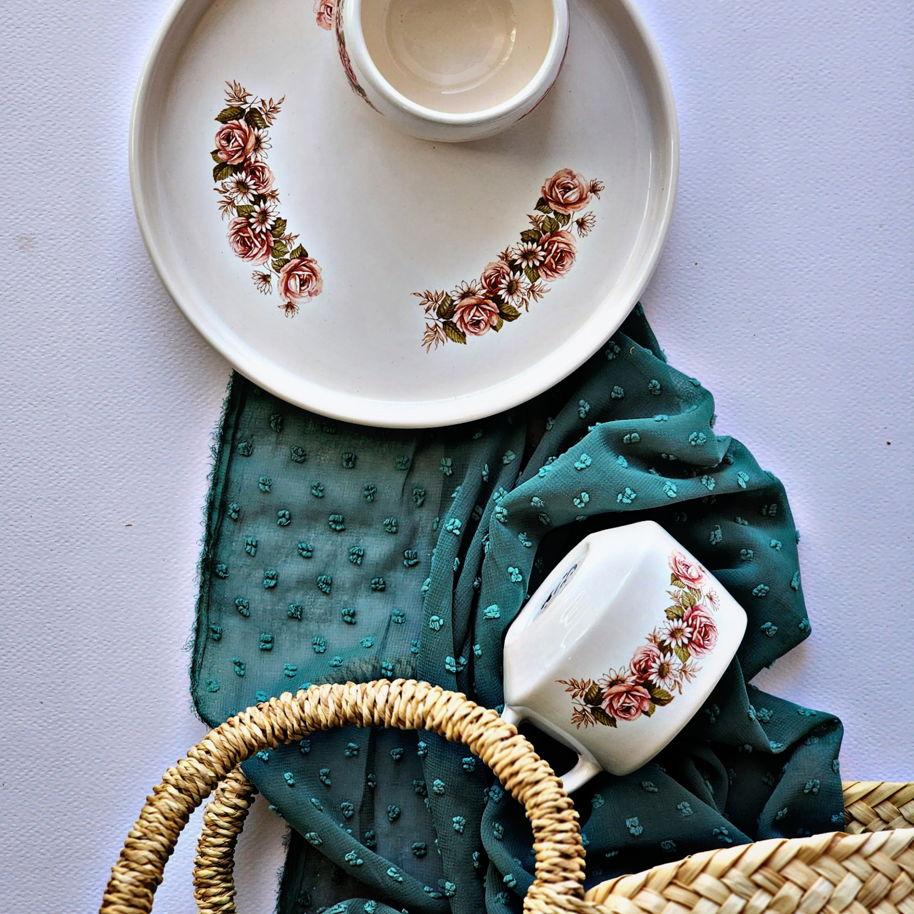 ست چایخوری دو نفره شامل دو عدد فنجان یک عدد قندان و یک عدد سینی طرح اردیبهشت کاملا مصرفی