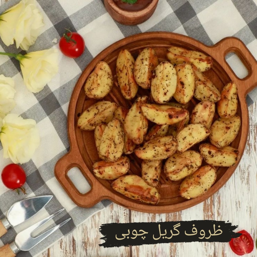 دیس چوبی طرح گریل مدل گرد دسته دار مبلمونسرا مدل 274626
