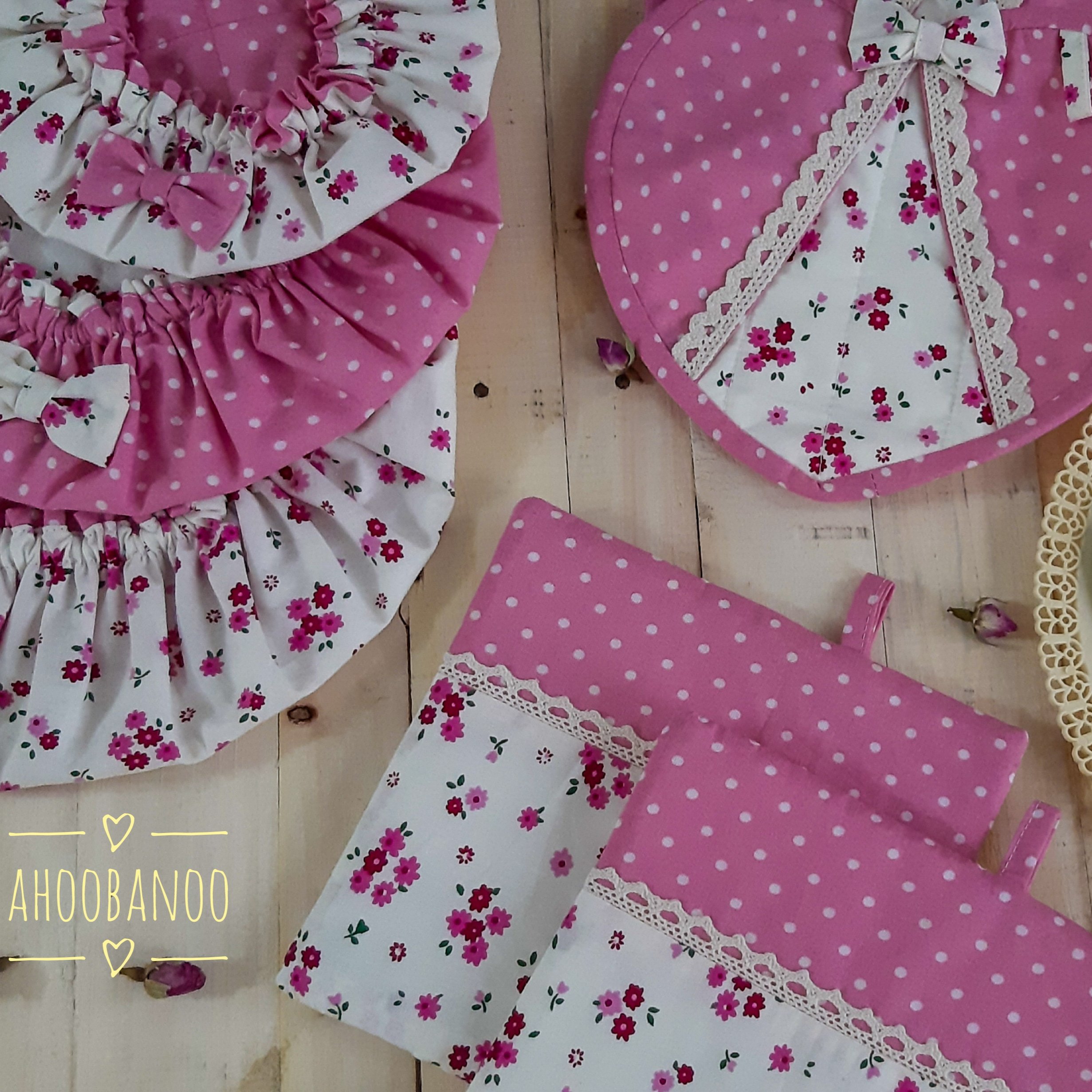 این سرویس شامل سه تا دمکنی و یک جفت دستگیره مربع ویک جفت دستگیره قلبی یه پیشبند یه نمگیر یه کاور قابلمه و یک جفت دستگیره یخچال میباشد