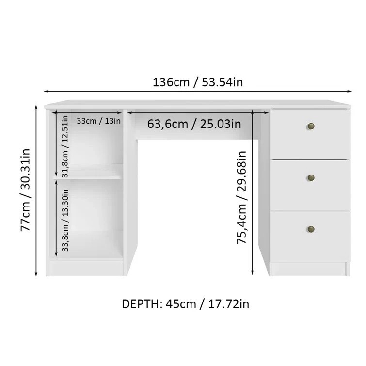 میز کامپیوتر مدل IK533 جنس روکش از ملامینه درجه یک میباشد و دارای سه عدد کشو و یک عدد درب و یک طبقه ریلی جهت قرار دادن کیبورد و درب دارای لولای با کیفیت میباشند و کشو ها دارای ریل ساچمه ای با کیفیت میباشند و این کالا از استحکام و مقاومت بالایی برخوردار است و در رنگ بندی های زیبا و شکیل میباشد.