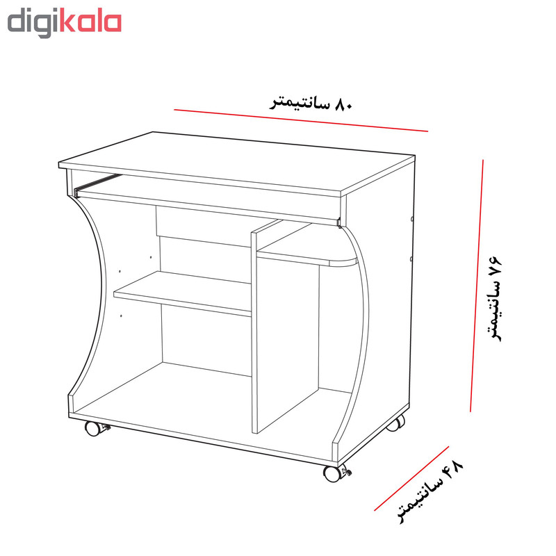 همه چی در یکجا با یک میز کامل و متحرک، معمولا جابجایی سیستم کامپیوتر یا لبتاپ و لوازم جانبی در خانه و یا در محل کار، سخت و مشکل است و باعث صدمه دیدن می شود با این میز بسیار سبک، شیک، منظم می توانید در کنار مبل استفاده به راحتی با استفاده از نیروی کم به سمت کاناپه یا تختخواب جابجا و در تمام نقاط خانه و محل کار از ایستگاه کاری جمع و جور استفاده کنید. جنس میز تمام ام دی اف با اتصالات دوبلینگستور پیچ و چسب مخصوص به طور مرتب در محل کار و زندگی شما قرار می گیرد. لازم به ذکر است میز بر روی کاستورهای چرخ سوار است و در هر زمان توسط ترمز های چرخ میتوانید جابجایی را متوقف و یک میز ایستا داشته باشید.