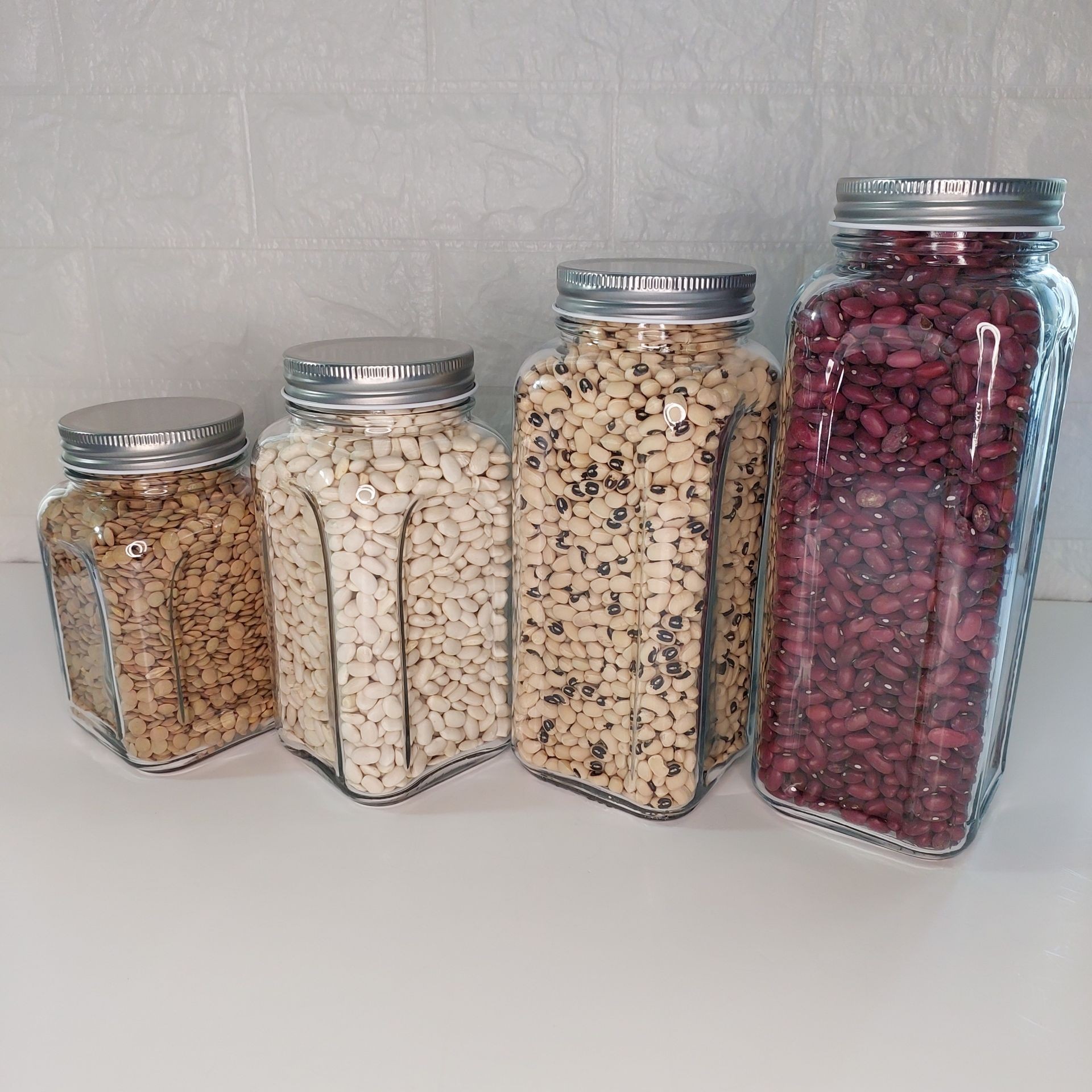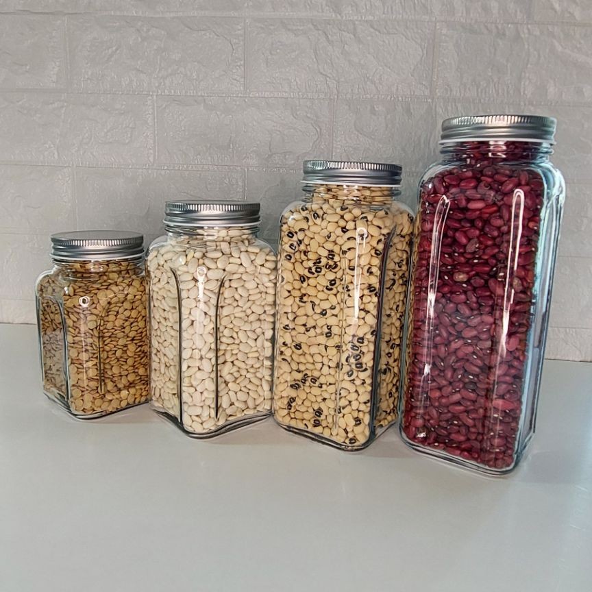 شیشه های باکیفیت با عرض 8 و ارتفاع 23 یا 27 سانت مناسب ا کیلو حبوبات یا قند و شکر شیشه این نوع بانکه قطور است و تقزیبا شفاف و بدون حباب هستند . با وجود اینکه کف بانکه ها 8 سانته توجه کنید که دهانه درب 6 سانت است. این بانکه ها ایرانی هست اما کیفیت شیشه از نوع مرغوب است. در غرفه ما بانکه هایی با شیشه های ظریف تر و ضعیف تر و قیمت کمتر هم وجود دارد