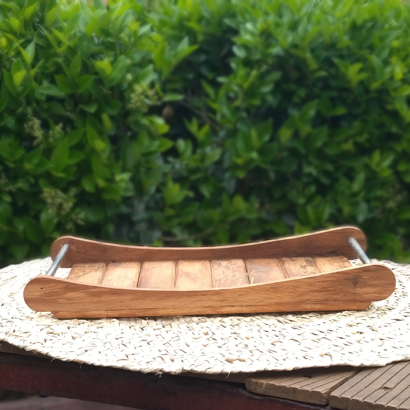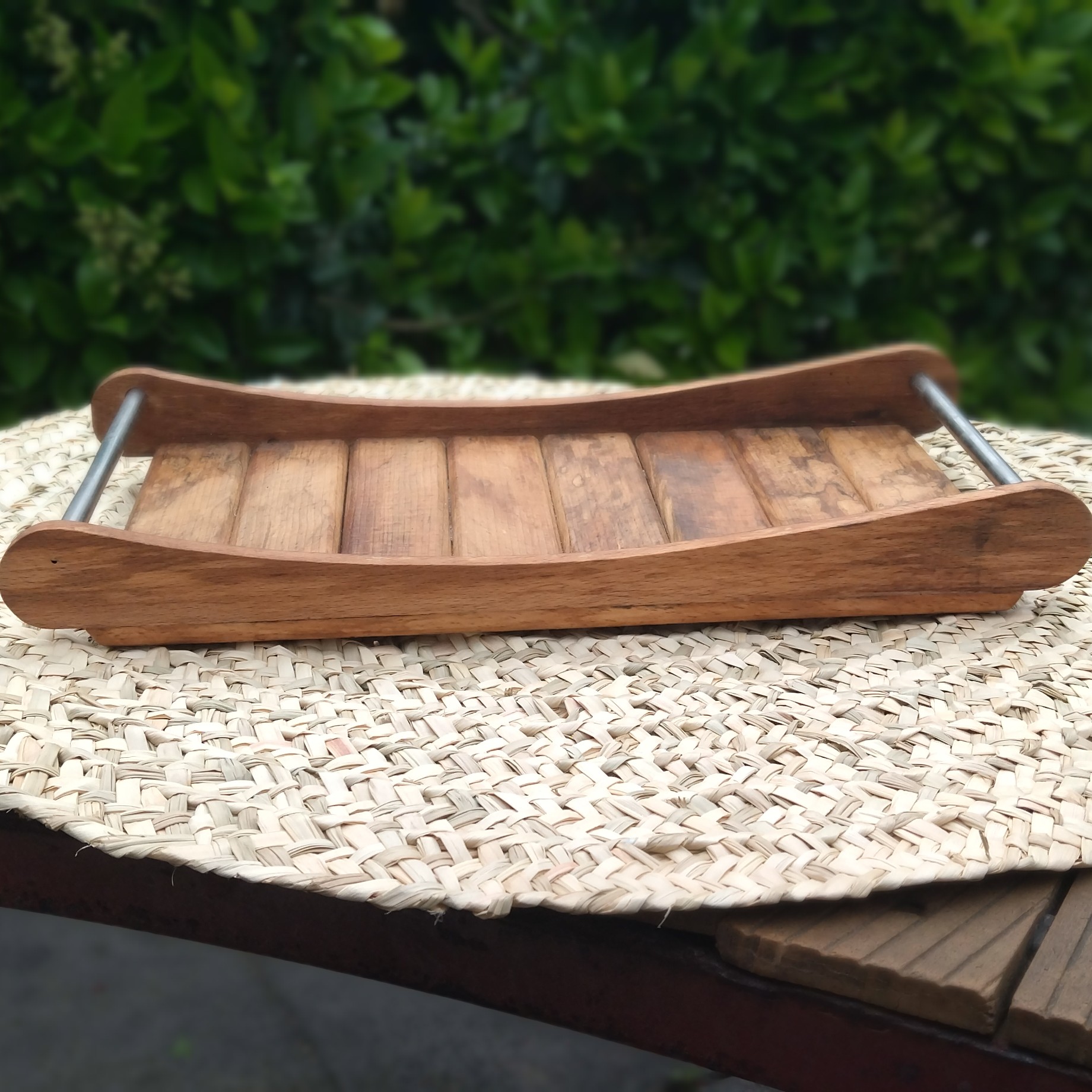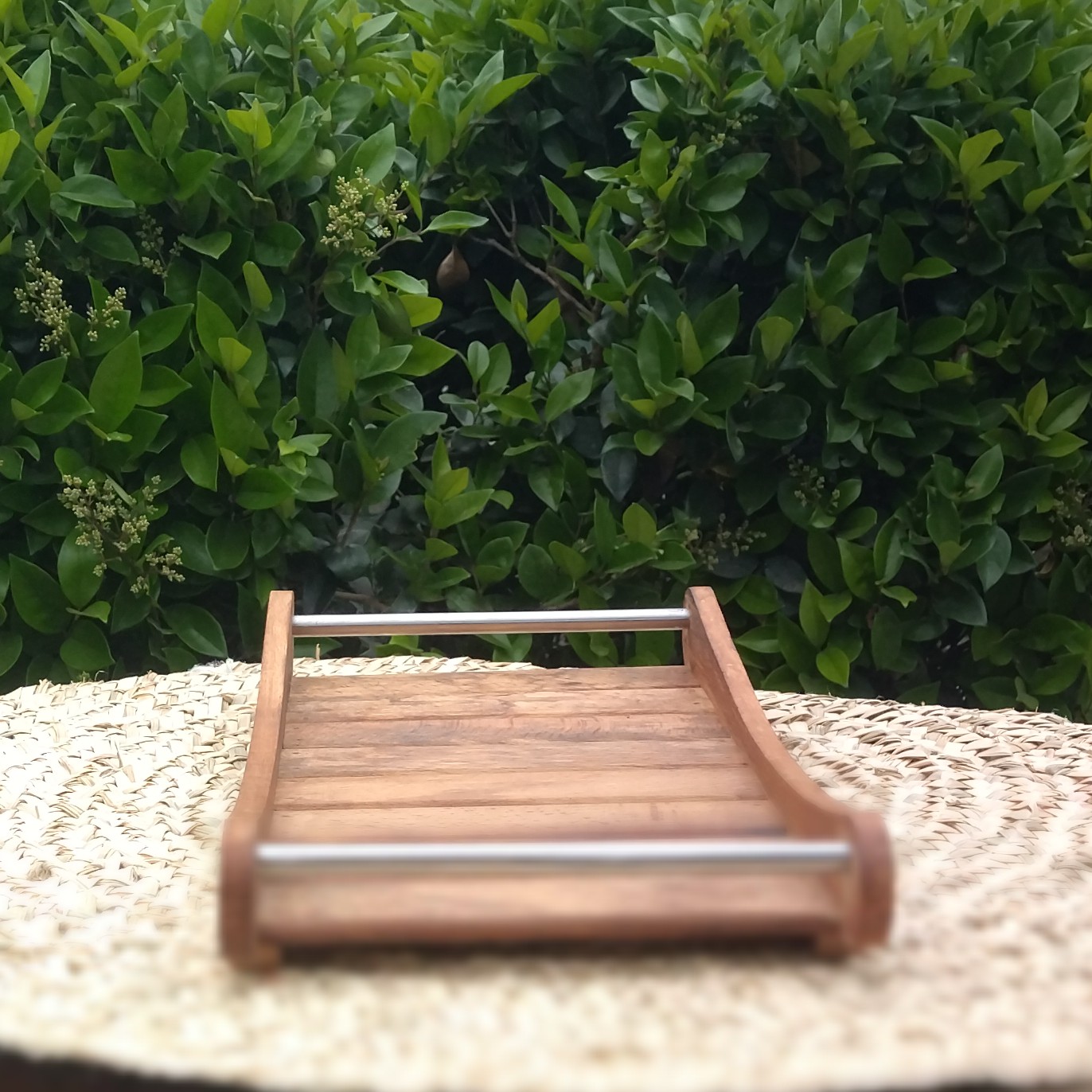 سینی چوبی مدل گیسو کمند دسته استیل قابل شستشو با دست بدنه تمام چوب راش گرجستان