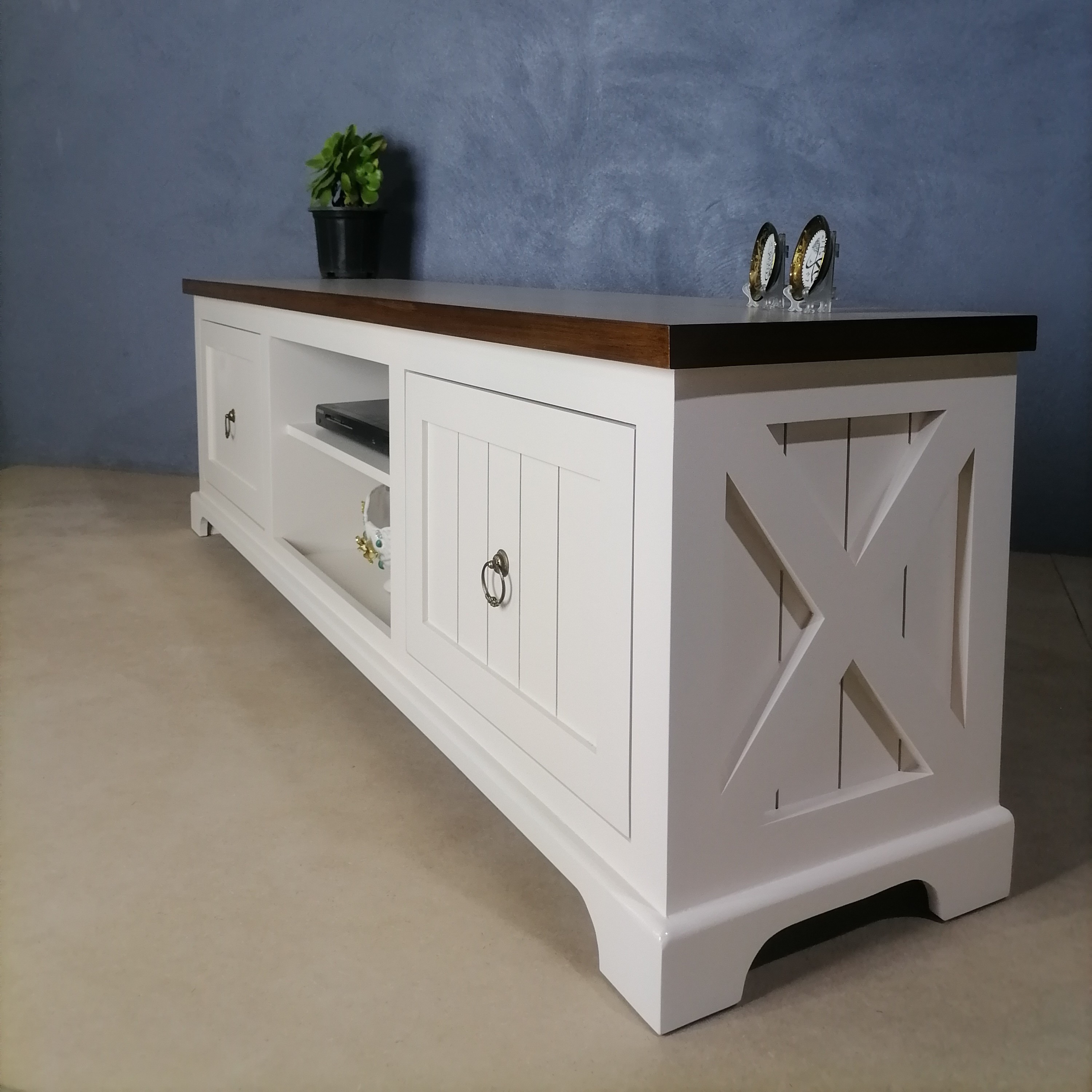 میزتلویزیون جدید نئوکلاسیک سفیدشیری سایز 180 مبلمونسرا مدل 221115